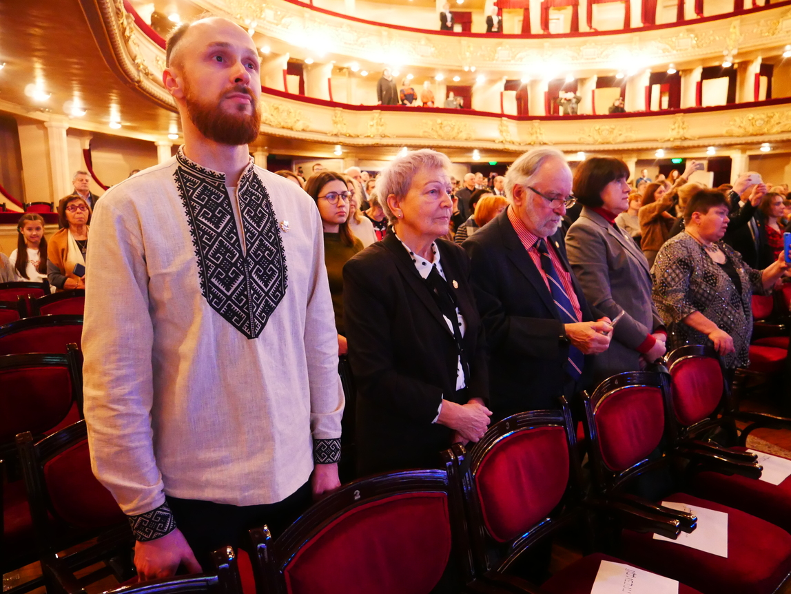 Next, the National Honored Ukrainian Academic Folk Choir named after Hryhoriy Veryovka (artistic director – People's Artist of Ukraine Igor Kuryliv) performed the State Anthem of Ukraine, the spiritual hymn "God Great and Only," and one of the musical symbols of Ukrainian resistance to Russian aggression – the song "Oh, the Red Viburnum in the Meadow."