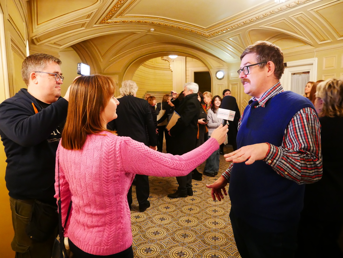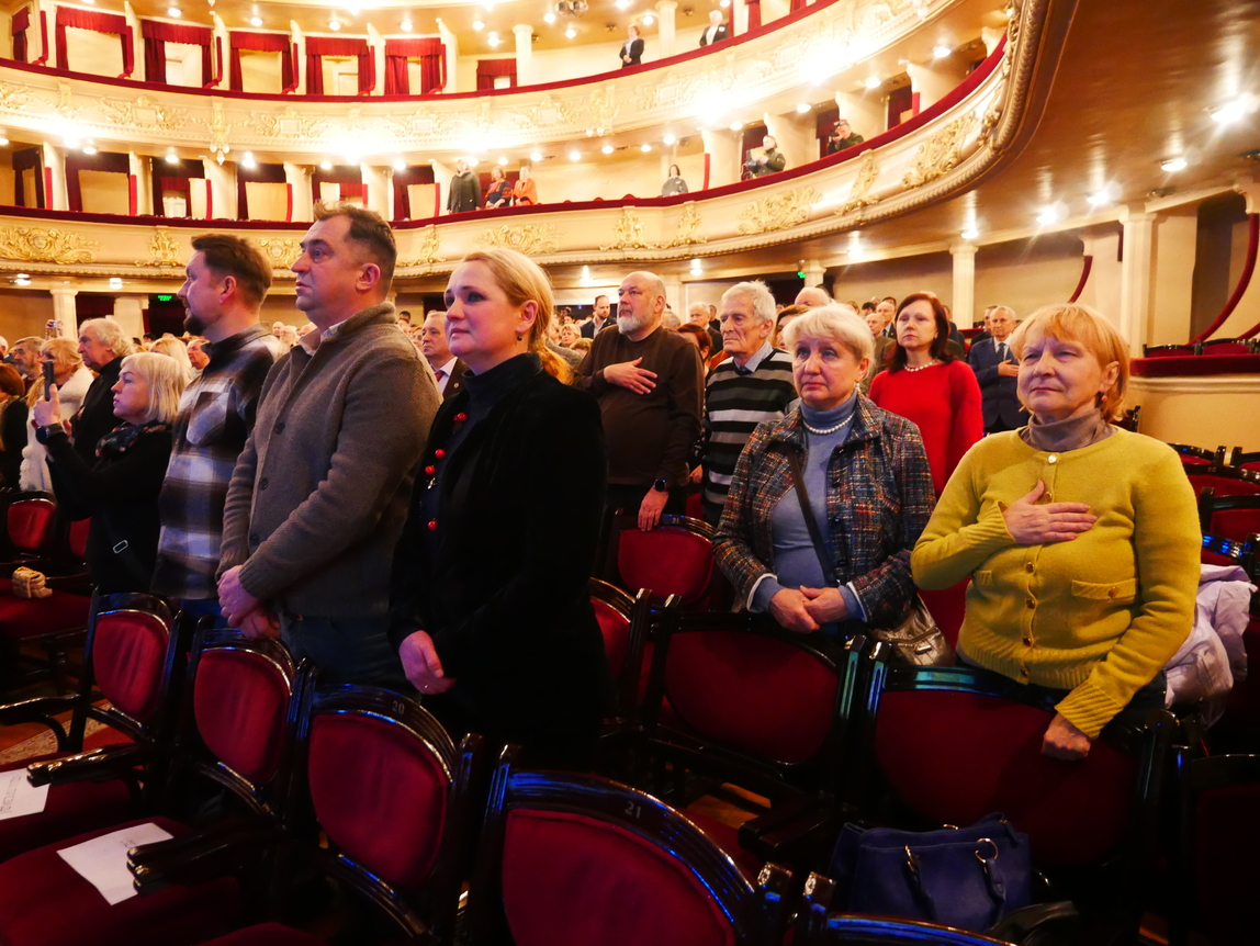 With poetic gifts for the anniversary evening came the laureate of the Taras Shevchenko National Prize of Ukraine, People's Artist of Ukraine, Hero of Ukraine Anatoliy Palamarenko. The artist recited a modernized version of Pavlo Tychyna's poem "I Assert Myself" and one of Pavlo Hlazovyi's humorous poems.