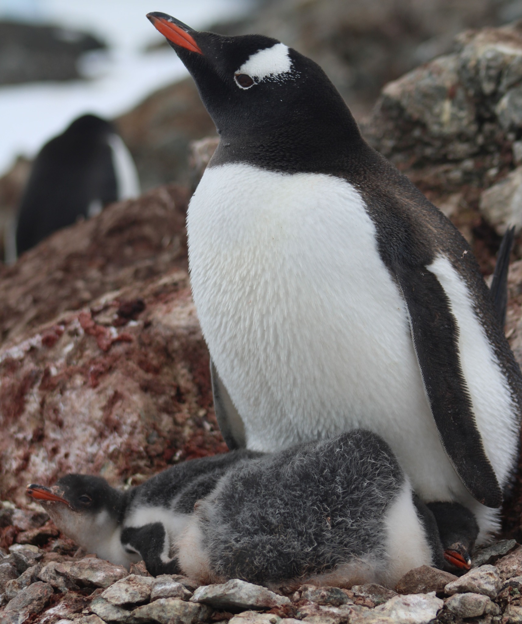 Субантарктичний пінгвін із пташенятами неподалік Української антарктичної станції «Академік Вернадський». Фото з Facebook-сторінки Світозара Давиденка