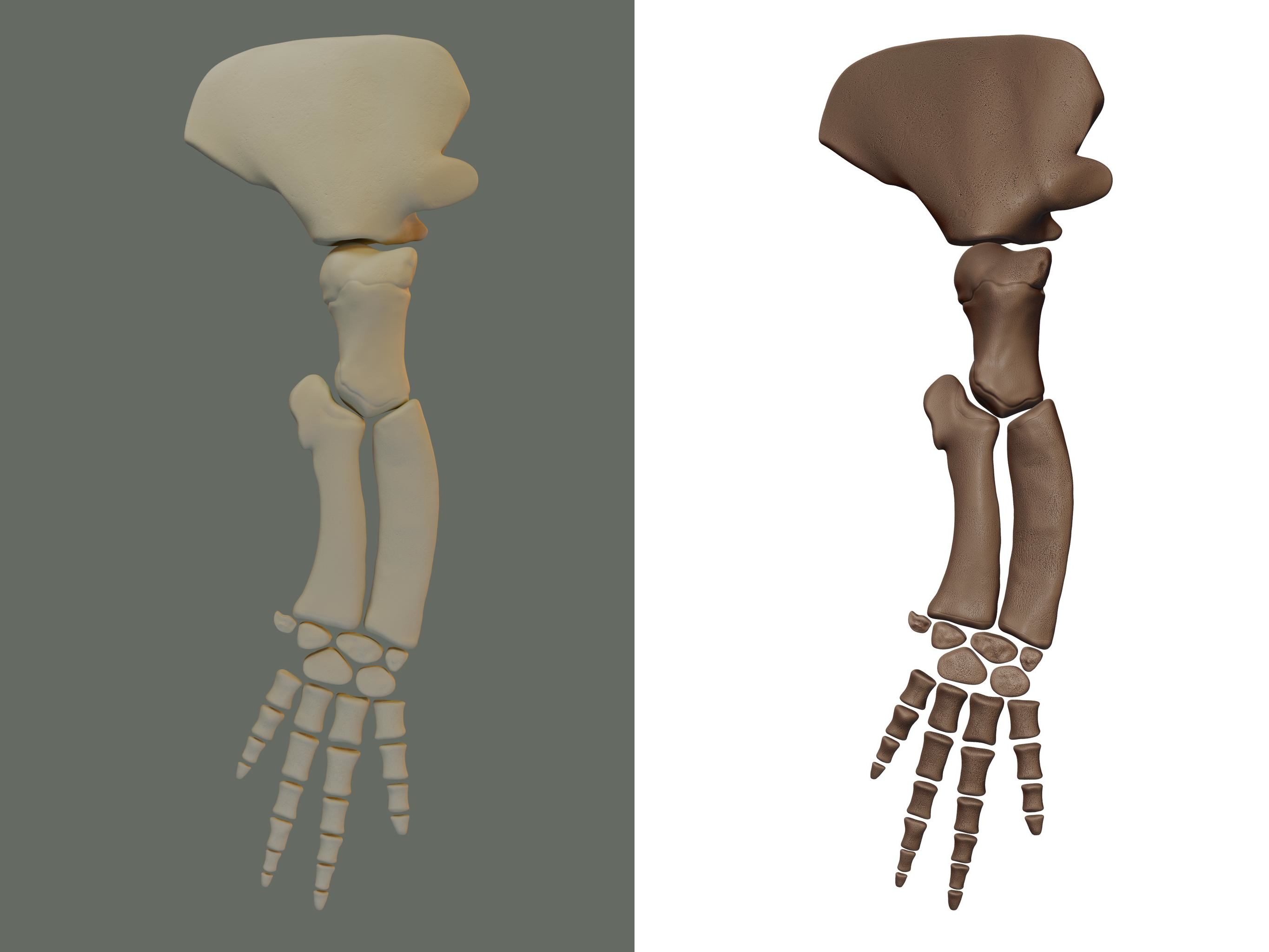 Але наш 3D-скан – це одна суцільна тривимірна модель, єдина структура, монолітний шматок. Тобто скелет не розділений. Тому згодом у мене виникла ідея окремо візуалізувати кожен хребець, кожну кісточку. Це можна зробити за допомогою 3D-редактора. Щоб відтворити їх, ми робили віртуальні розрізи у місцях сполучення кісток, а ділянки отворів моделювали, спираючись, наприклад, на ілюстрації скелетів споріднених видів.