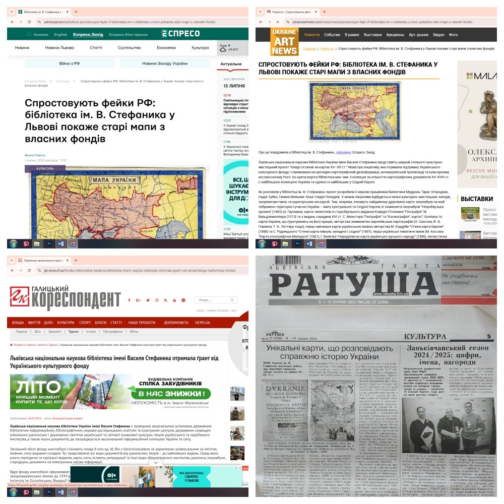 Улітку цього року Львівська національна наукова бібліотека України імені В. Стефаника за фінансової підтримки Українського культурного фонду (в межах конкурсної програми «Культура під час війни») почала реалізувати унікальний культурно-мистецький проєкт «Imago Ucrainæ на картах XV–XX ст.», спрямований на протидію картографічній дезінформації, антиукраїнській пропаганді та культурному експансіонізмові Росії, на обстоювання територіальної цілісності й суверенітету України.