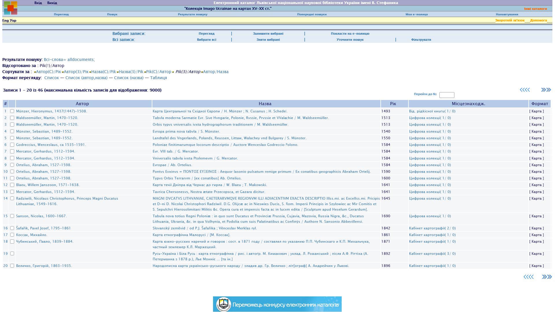 Реєстр картографічних видань і зображення мап із цифрової колекції