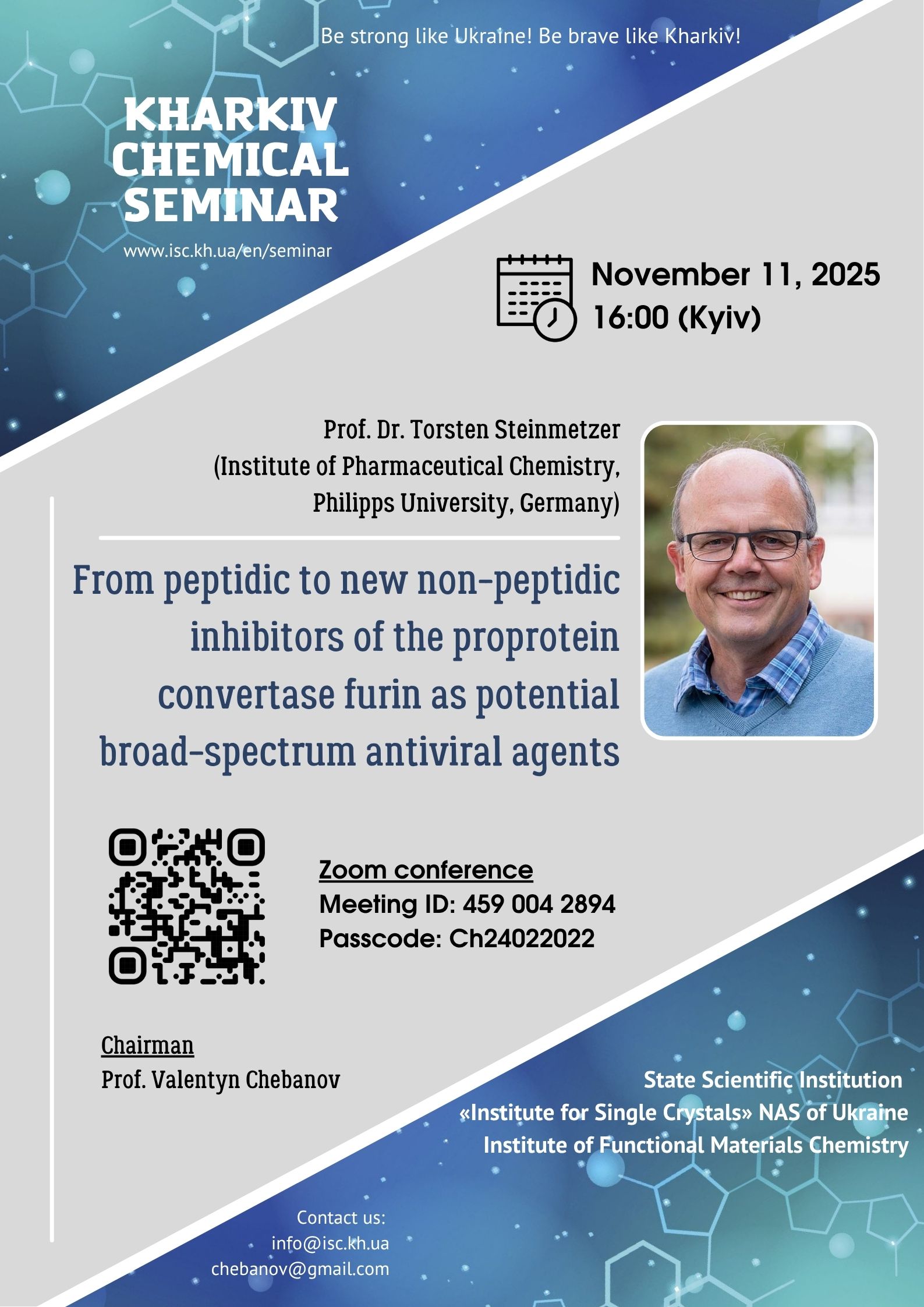 11 листопада 2025 року о 16:00 у межах Харківського хімічного семінару (Kharkiv Chemical Seminar), започаткованого Інститутом хімії функціональних матеріалів Науково-технологічного комплексу «Інститут монокристалів» НАН України, відбудеться чергова лекція.