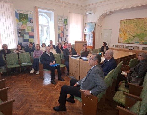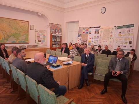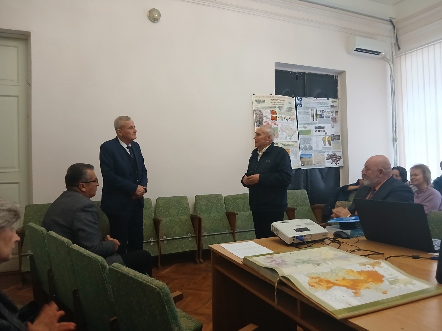 З іншими вагомими науковими здобутками Інституту географії НАН України очільників Академії ознайомили заступник директора з наукової роботи цієї установи, завідувач відділу суспільної географії член-кореспондент НАН України Сергій Лісовський і завідувач відділу геоморфології та палеогеографії Інституту кандидат географічних наук Роман Спиця. Доповідачі наголосили на нових здобутках суспільно-географічних і природничих підрозділів установи, що пов’язані з дослідженням наслідків повномасштабного вторгнення росії, зокрема в аспекті просторової справедливості на рівні територіальних громад, функціональної структуризації території України та її змін, методології ландшафтознавчого забезпечення просторового планування в Україні, досліджень геоморфогенезу урбанізованої природно-антропогенної системи Києва, наслідків руйнування греблі Каховської ГЕС, досліджень територіальних громад Київського Придніпров’я, що постраждали від російської агресії, у контексті резильєнтності й потенціалу відновлення аграрної сфери цих громад тощо.