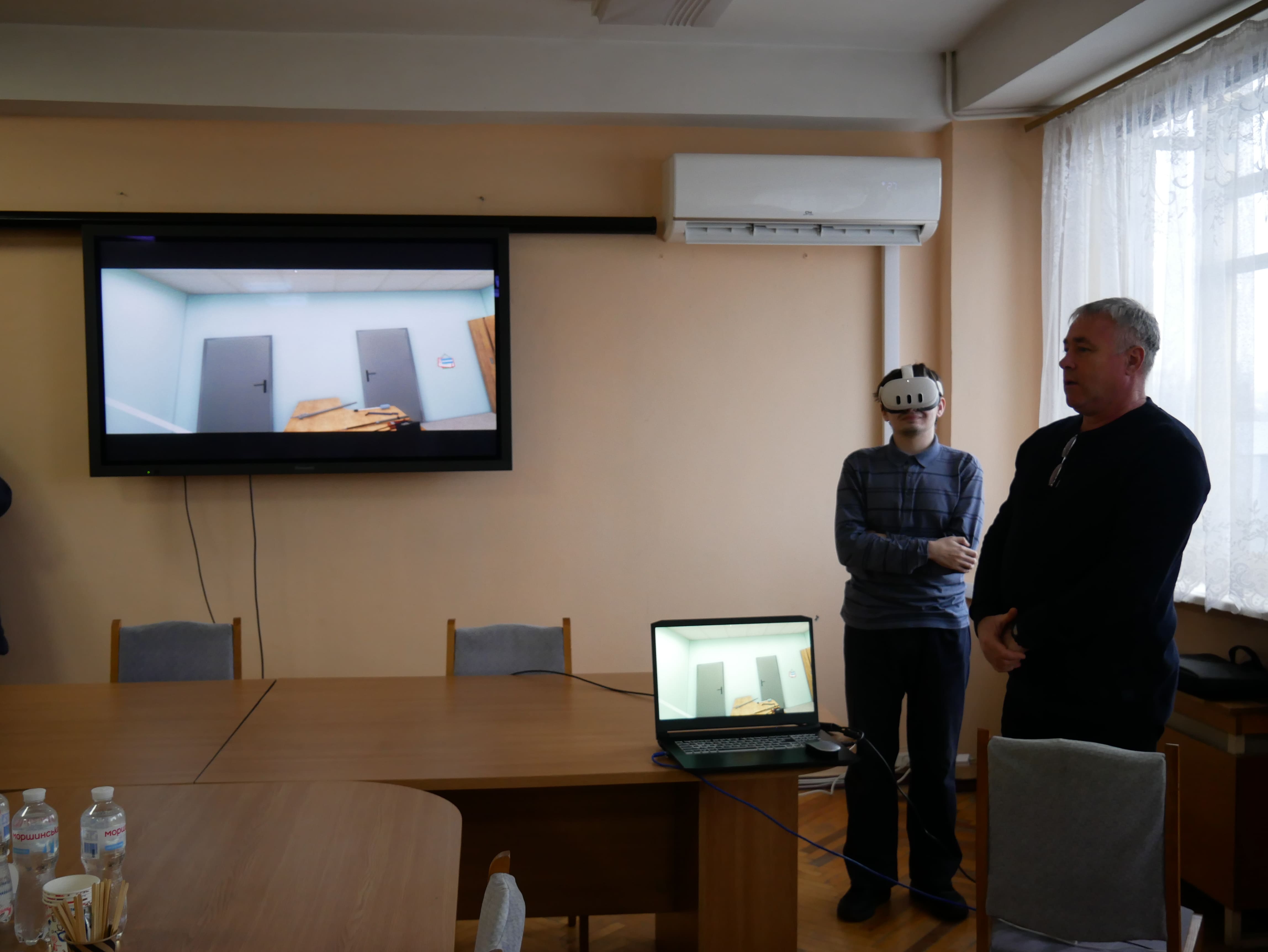 Головний науковий співробітник доктор технічних наук Віктор Самойлов ознайомив з розробками зі створення віртуальних тренажерів для навчання операторів енергетичних установок. Роботу одного з таких тренажерів продемонстрував старший науковий співробітник кандидат технічних наук Ігор Плетяний.
