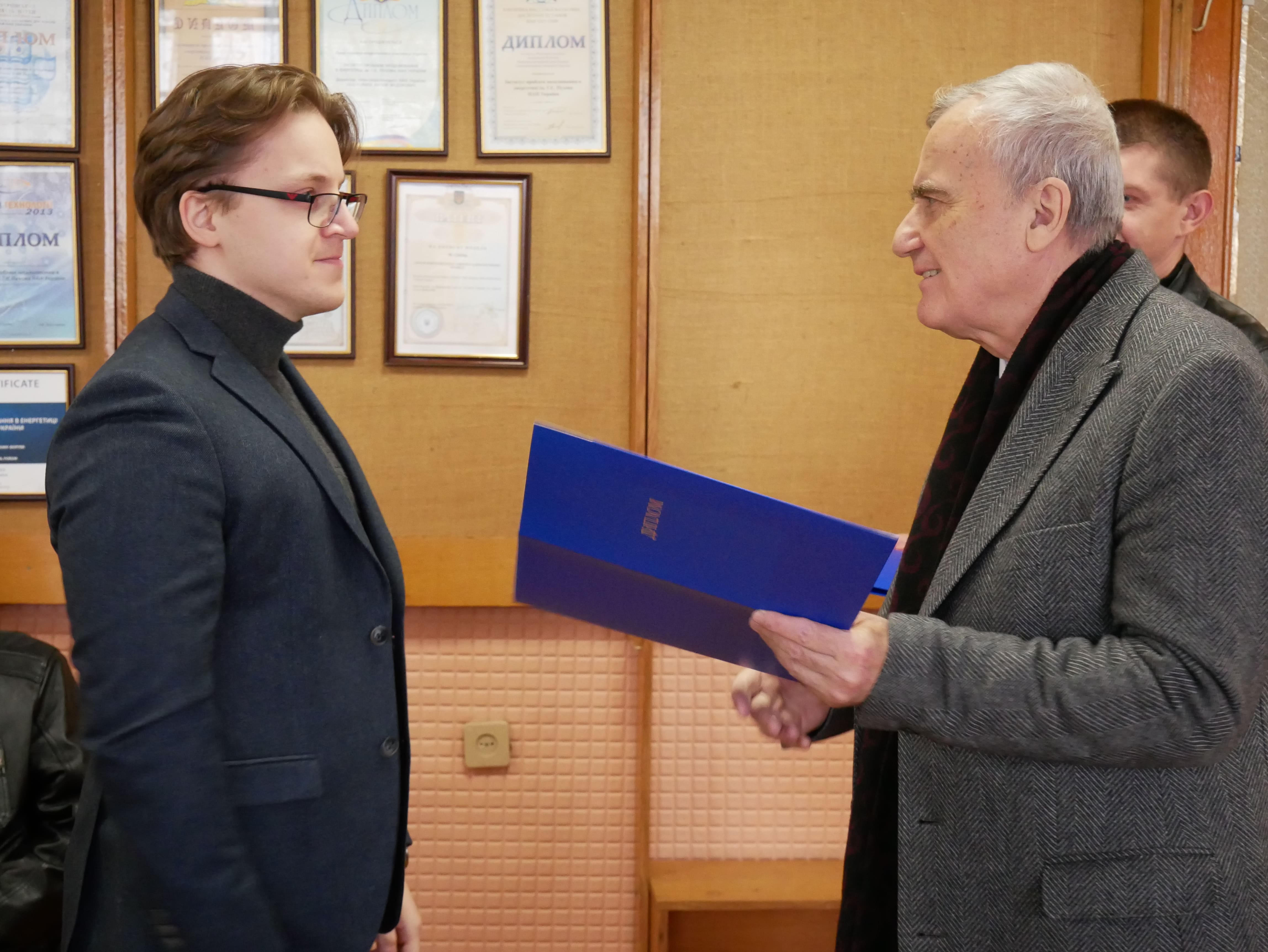 Під час візиту Президент НАН України академік НАН України Анатолій Загородній вручив дипломи доктора філософії випускникам аспірантури Інституту, які успішно захистили дисертації наприкінці 2025 року.