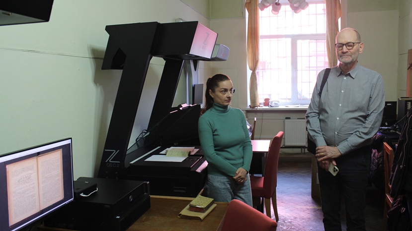 Доктор філософії Ларс Ілшаммар також оглянув новий сканер. Національна бібліотека України імені В.І. Вернадського отримала цей пристрій завдяки Шведській національній бібліотеці та Шведській академії наук, зокрема завдяки великим зусиллям самого Ларса Ілшаммара.
