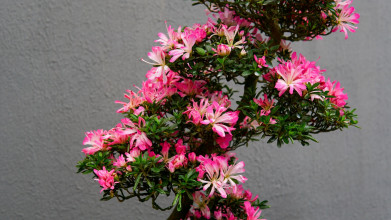 У колекції азалій відділу субтропічних та тропічних рослин Національного ботанічного саду імені М.М. Гришка НАН України зацвіла унікальна азалія сацукі (або ж японська азалія) “Hotaka-no-Mai”. Це не просто одна з багатьох форм садових азалій, а сорт, спеціально створений для вирощування у стилі бонсаї. Він є унікальним зразком японського садового мистецтва, адже від самого початку селекціонери працювали над такою азалією саме з цією метою.