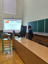 Борис Вікторович представив змістовну презентацію про історію досліджень сцинтиляторів в ІСМА НАН України, участь Інституту у міжнародних експериментах та розробки у сфері наноматеріалів біомедичного призначення. Окрему увагу він приділив застосуванню нанотехнологій для створення функціональних добавок, перспективних для медицини та технічних галузей.