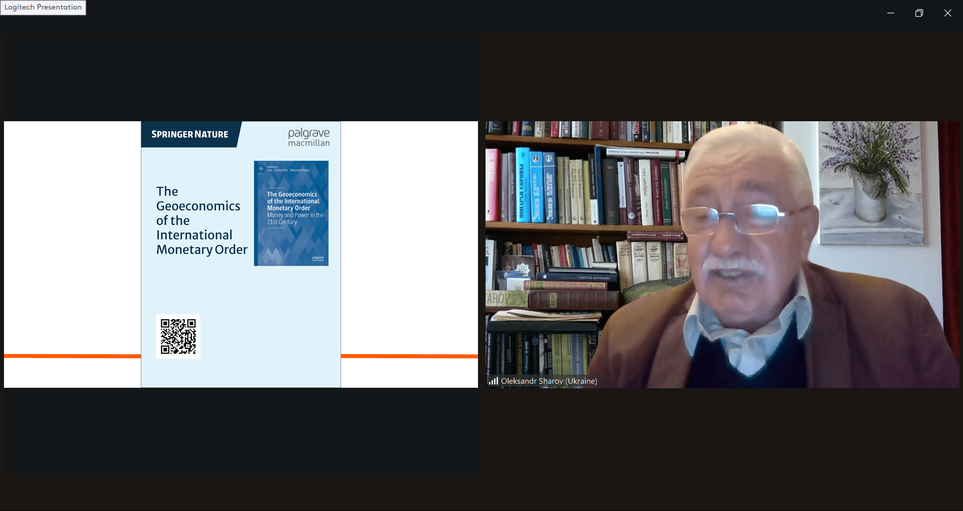 Один зі співавторів книги, заступник директора з наукової роботи Інституту економіки та прогнозування НАН України член-кореспондент НАН України Сергій Кораблін подякував професорові-досліднику Школи економіки та бізнесу Університету Анагуак Пуебла докторові Хосе Каррільйо-Піньї і головному науковому співробітнику сектору міжнародних фінансових досліджень відділу публічних фінансів Інституту економіки та прогнозування НАН України докторові економічних наук, професорові Олександрові Шарову за їхню натхненну працю та великий організаторський талант, завдяки яким вдалось ініціювати й успішно завершити цей визначний міжнародний видавничий проєкт у надзвичайно складний час. Він також висловив вдячність керівництву Університету Анагуак Пуебла і Національної академії наук України, без підтримки яких довготривалі зусилля колективу дослідників навряд чи могли б досягти своєї високої мети. На завершення свого виступу Сергій Кораблін відзначив вагомість отриманих у дослідженні результатів і впевненість у продовженні їхнього поглиблення, адже, на 26–27 листопада 2025 року Університет Анагуак Пуебла й Інститут економіки та прогнозування НАН України запланували свій наступний спільний форум – другу міжнародну конференцію “International Geoeconomic Shift: New Frontiers of Money and Finance” / «Міжнародний геоекономічний зсув: нові рубежі грошей та фінансів»).