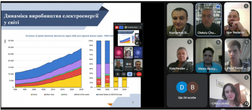 Дискусію модерував учений секретар і завідувач лабораторії Інституту проблем безпеки атомних електростанцій НАН України доктор технічних наук, старший дослідник Костянтин Сімейко. У своїй доповіді він окреслив шлях атомної енергетики від фундаментальної науки до стабільної електро- і теплогенерації, основні світові тенденції розвитку галузі, інноваційні ядерні системи четвертого покоління, а також розповів про діяльність наукових установ України у науковому супроводженні атомної енергетики. Окремо було висвітлено проблематику скорочення чисельності молодих учених в Україні, а як варіант розв’язання запропоновано створити кластер молодих науковців із різних установ, які спільно братимуть участь у розвитку атомної енергетики України, зокрема під час будівництва нових ядерних реакторів в умовах повоєнного відновлення.