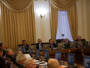 На завершення учасники засідання розглянули низку поточних питань. Зокрема, було ухвалено рішення про присвоєння звання «Почесний доктор Національної академії наук України» президенту Литовської академії наук, проректору Вільнюського університету, габілітованому доктору наук, професору Юрасу Банісу (Jūras Banys).