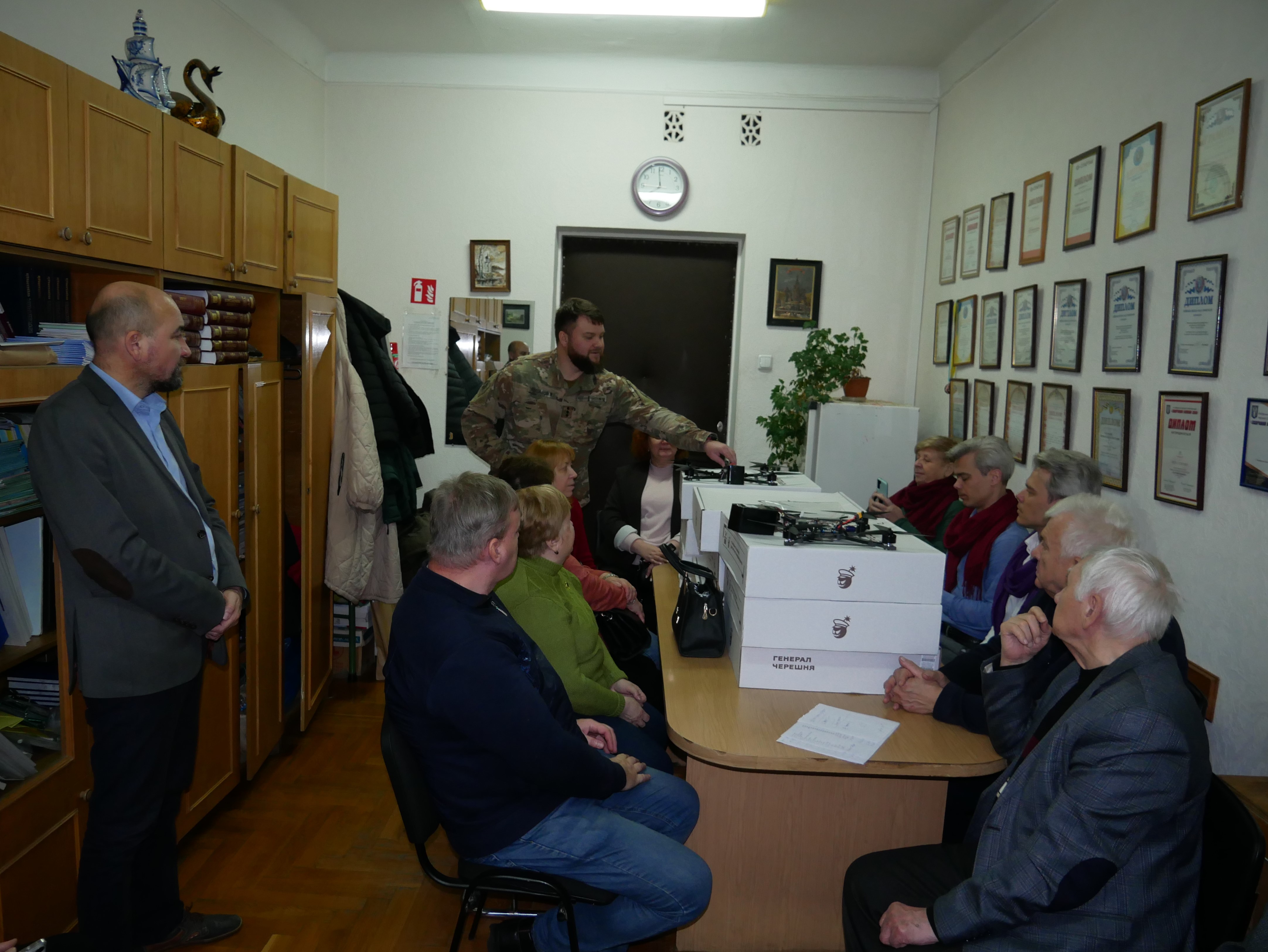 Офіцер цивільно-військової взаємодії Третьої окремої штурмової бригади ЗСУ Вадим Осадчий продемонстрував учасникам засідання ці 20 дронів, відповів на численні запитання щодо їх практичного застосування та висловив щиру подяку за надану суттєву допомогу.