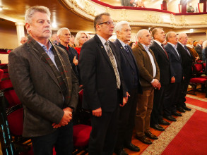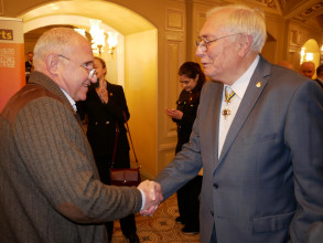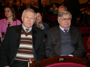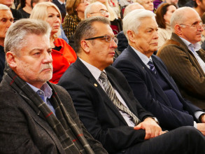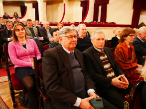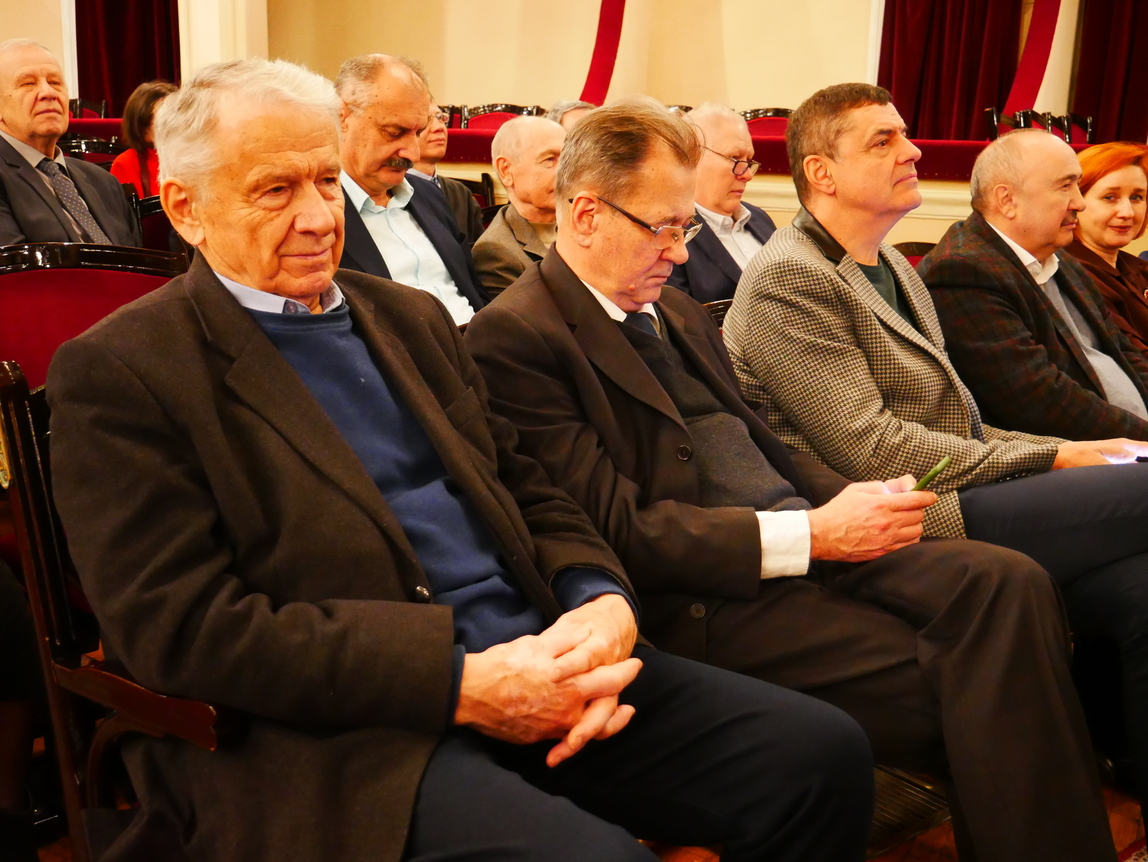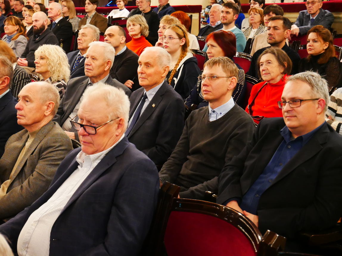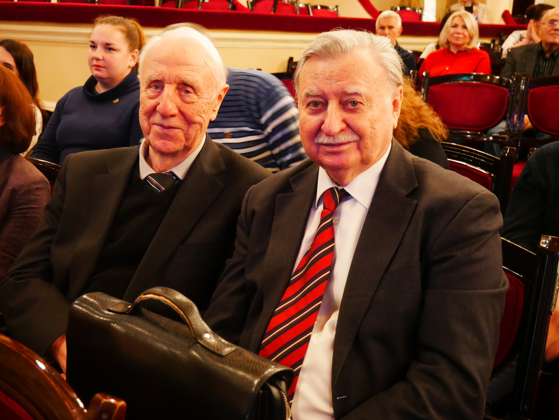 Дві надзвичайно наснажливі пісні з сильним бойовим духом – «Країна волі» та «Меч Арея» – виконав Сергій Василюк, лідер гурту «Тінь Сонця» і пілот роти ударних безпілотників «Вирій» 241-ї бригади територіальної оборони Збройних Сил України. Цікаво, що слова до першої з цих композицій, написані Ред’ярдом Кіплінґом, переклав заступник директора Інституту біохімії імені О.В. Палладіна НАН України доктор біологічних наук Володимир Чернишенко. «Радий вітати вас, шляхетне товариство, з таким величним ювілеєм. Щасливий, що ми можемо його відзначати в такій же величній залі, а головне – в нашому нескореному Києві, в нашій українській столиці під синьо-жовтим прапором, вдома. Пані та панове науковці, завдяки вам ми є країна волі», – сказав військовик і подякував науковцям за їхні нові ефективні винаходи, які допомагають рятувати життя українським захисникам під час війни.