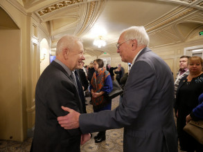 Гостям заходу продемонстрували три відеопривітання з нагоди ювілею Інституту біохімії – від генерального секретаря Федерації європейських біохімічних товариств професора Міґуеля де ла Рози, від першого ізраїльського лауреата Нобелівської премії іноземного члена НАН України, професора Аарона Чехановера, а також від українських полярників, які зараз перебувають в експедиції на антарктичній станції «Академік Вернадський».
