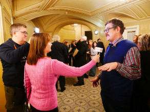 Із поетичними дарунками на ювілейний вечір завітав лауреат Національної премії України імені Тараса Шевченка, народний артист України, Герой України Анатолій Паламаренко. Артист продекламував осучаснену версію поезії Павла Тичини «Я утверждаюсь» і одну з гуморесок Павла Глазового.