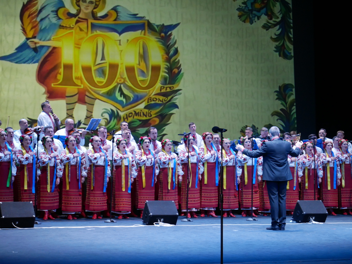 Далі Національний заслужений український академічний народний хор імені Григорія Верьовки (художний керівник – народний артист України Ігор Курилів) виконав Державний гімн України, духовний гімн «Боже великий, єдиний» та один із музичних символів українського опору російській агресії – пісню «Ой, у лузі червона калина».