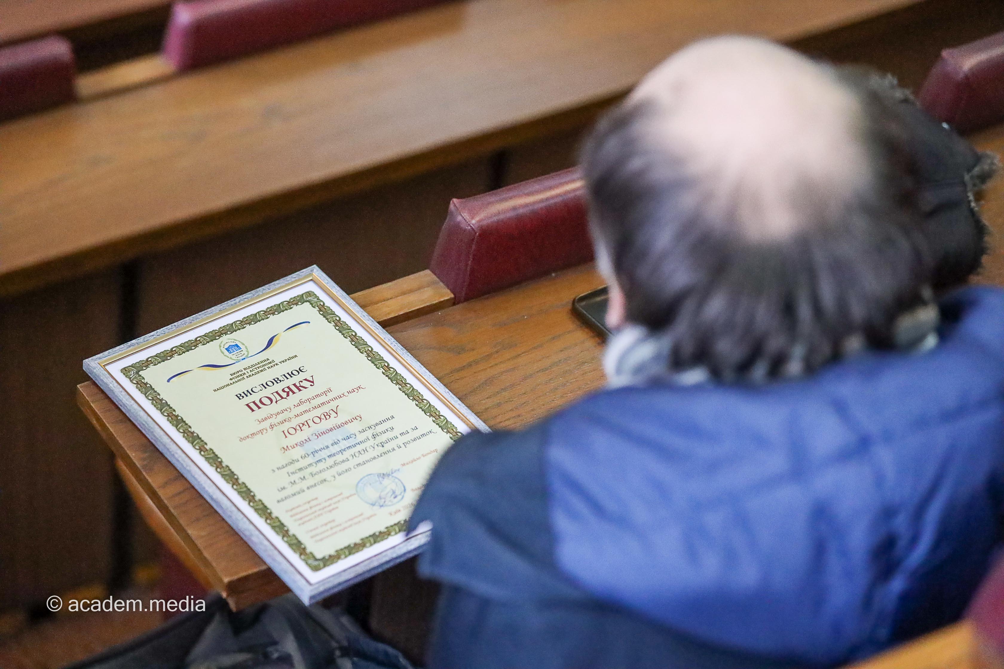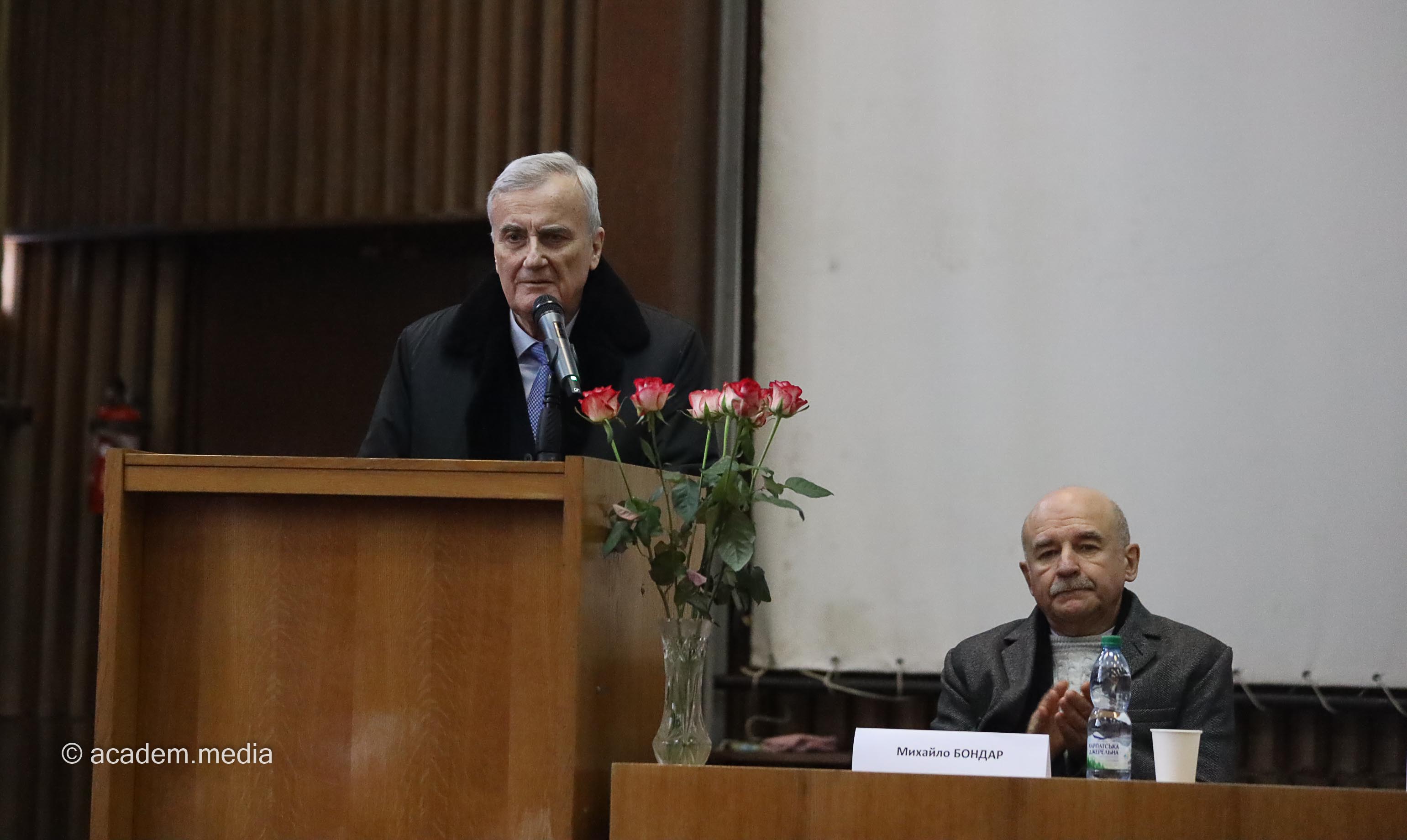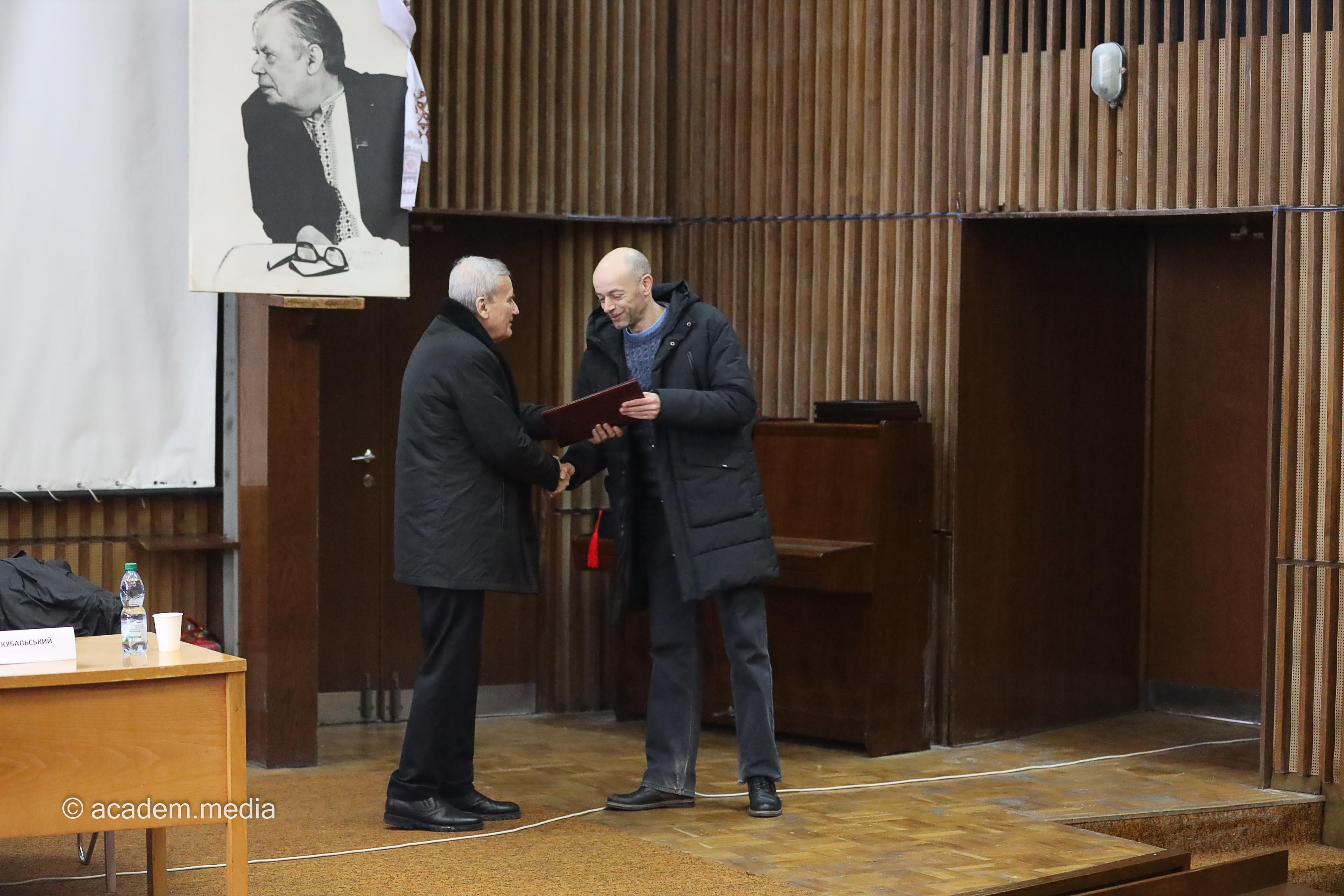 Від Відділення фізики і астрономії НАН України учасників Урочистих зборів привітав академік-секретар Відділення академік НАН України Михайло Бондар, який, до того ж, вручив працівникам Інституту подяки Відділення.