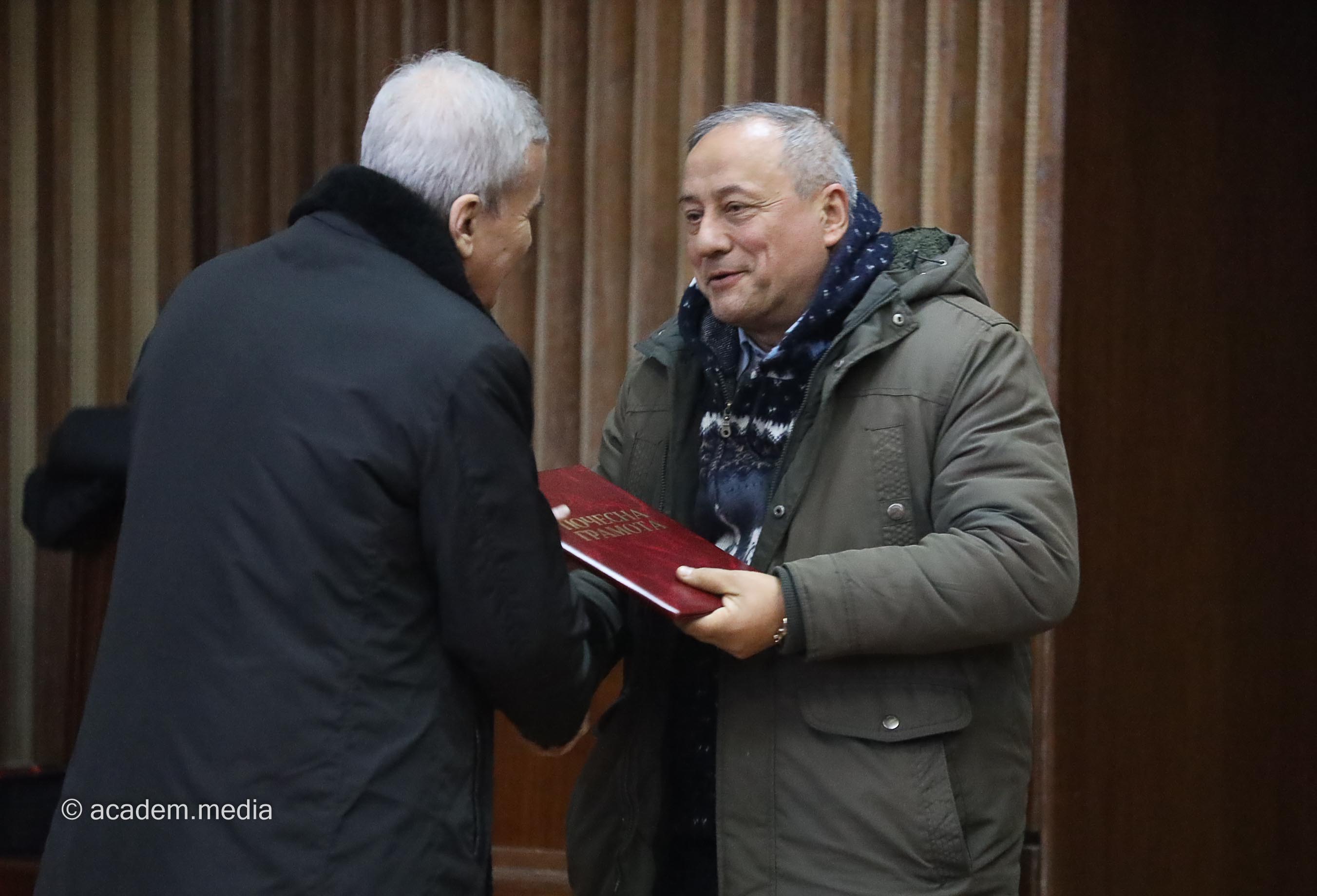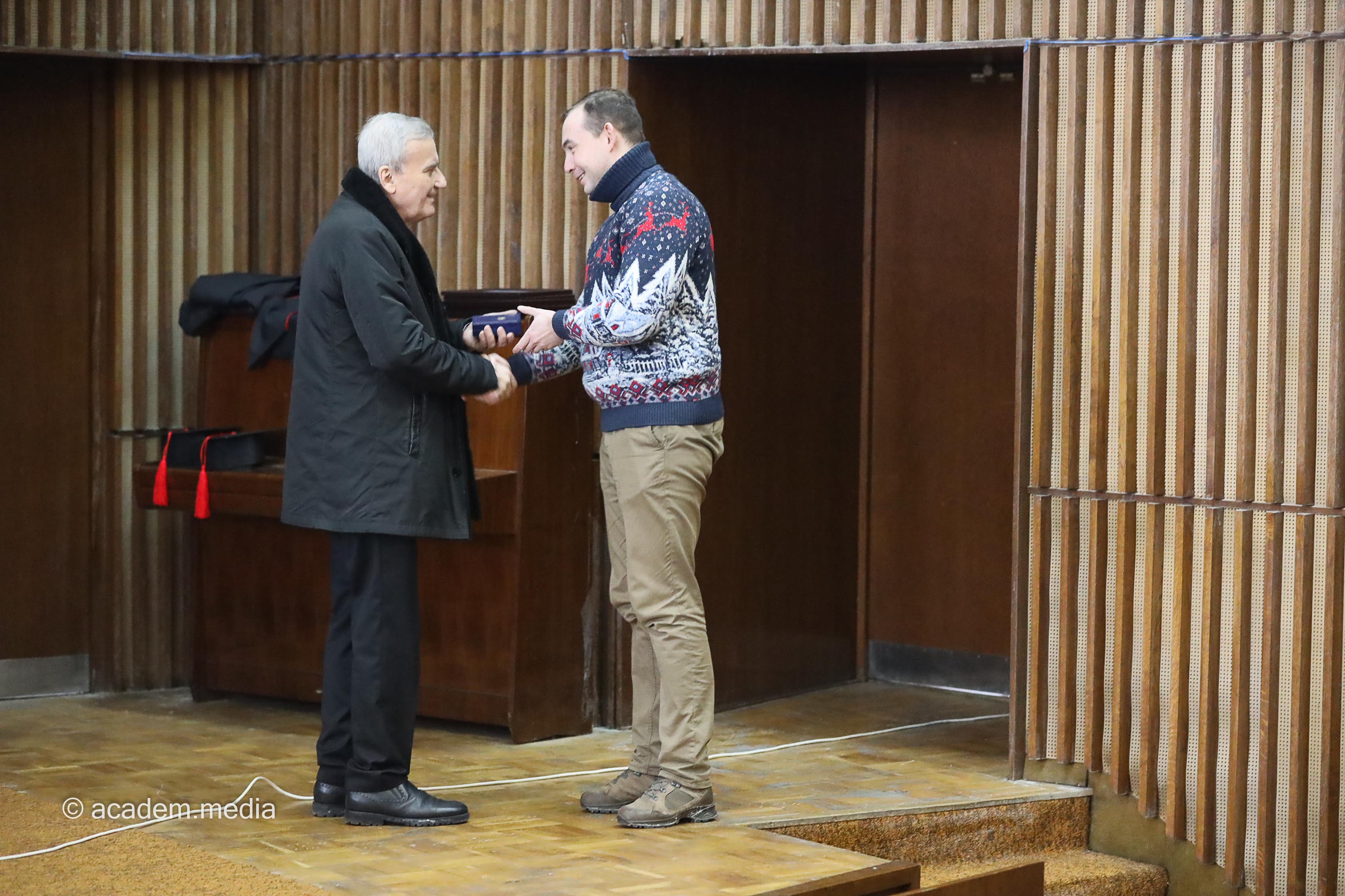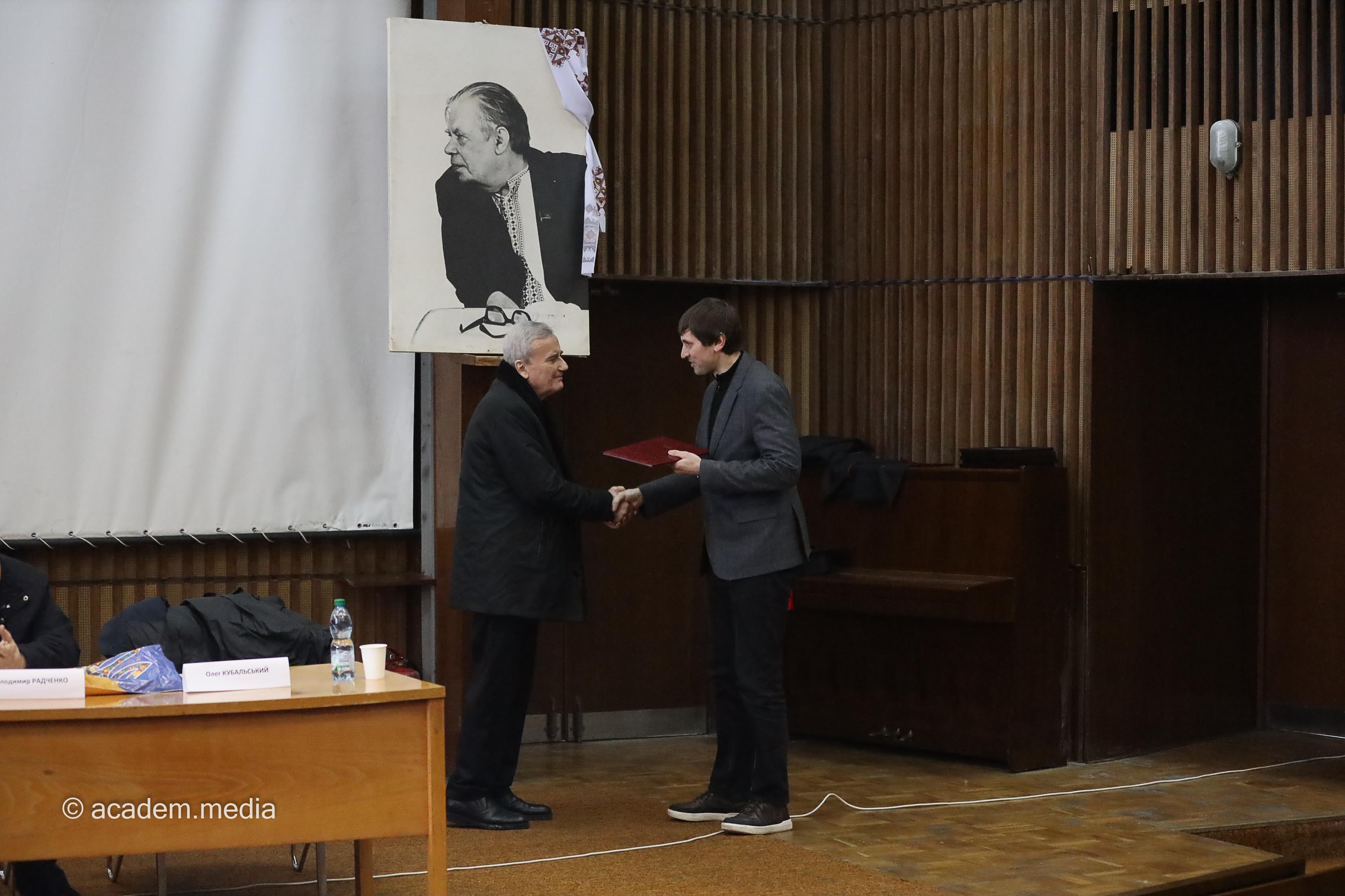 Від Відділення фізики і астрономії НАН України учасників Урочистих зборів привітав академік-секретар Відділення академік НАН України Михайло Бондар, який, до того ж, вручив працівникам Інституту подяки Відділення.