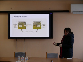Головний науковий співробітник доктор технічних наук Віктор Самойлов ознайомив з розробками зі створення віртуальних тренажерів для навчання операторів енергетичних установок. Роботу одного з таких тренажерів продемонстрував старший науковий співробітник кандидат технічних наук Ігор Плетяний.