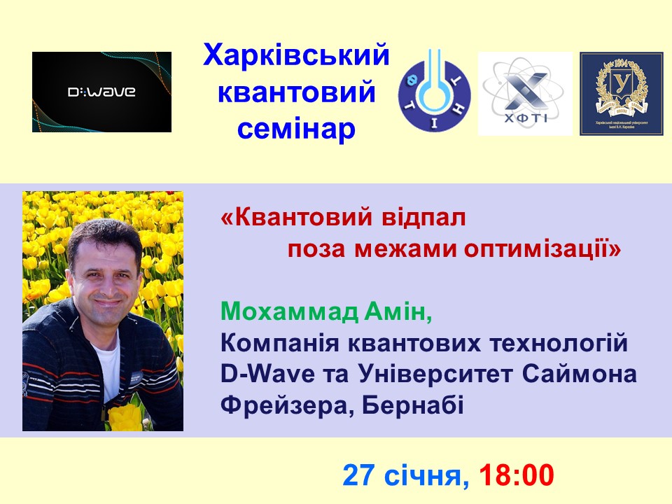Лектор: Мохаммад Амін (Mohammad Amin), Компанія квантових технологій D-Wave та Університет Саймона Фрейзера, Бернабі (D-Wave Quantum Inc. and Simon Fraser University, Burnaby).