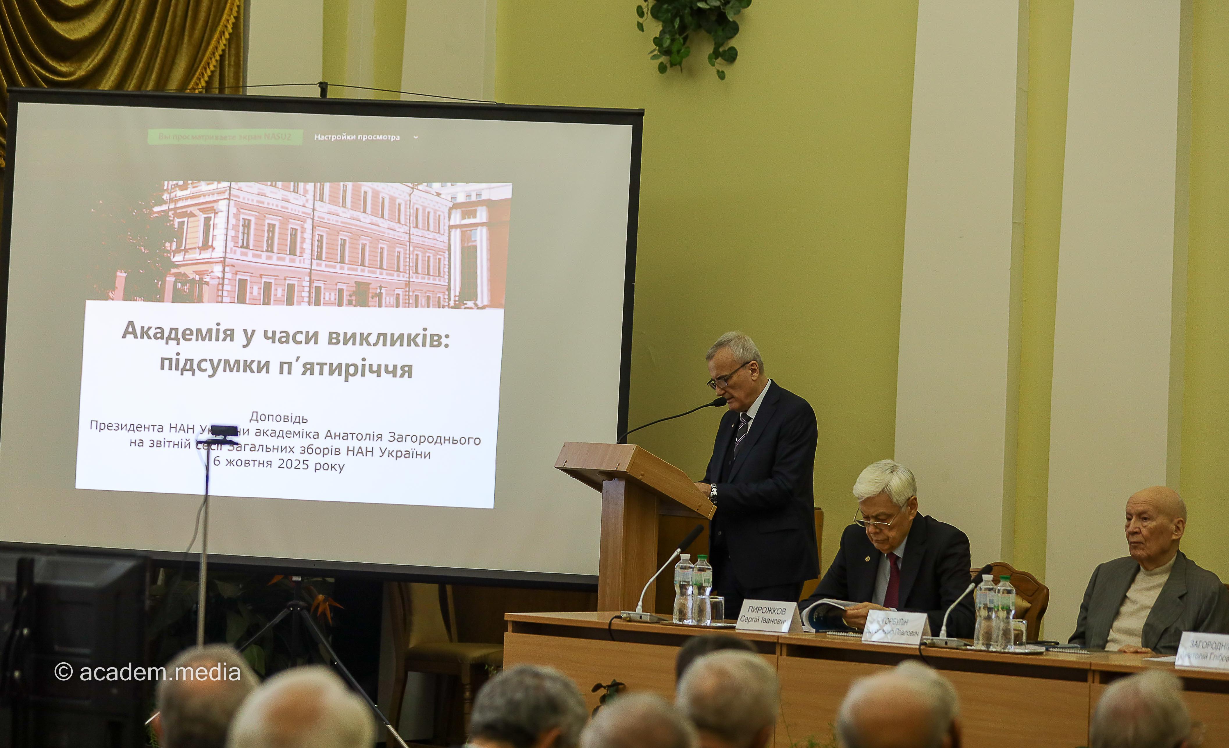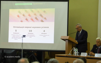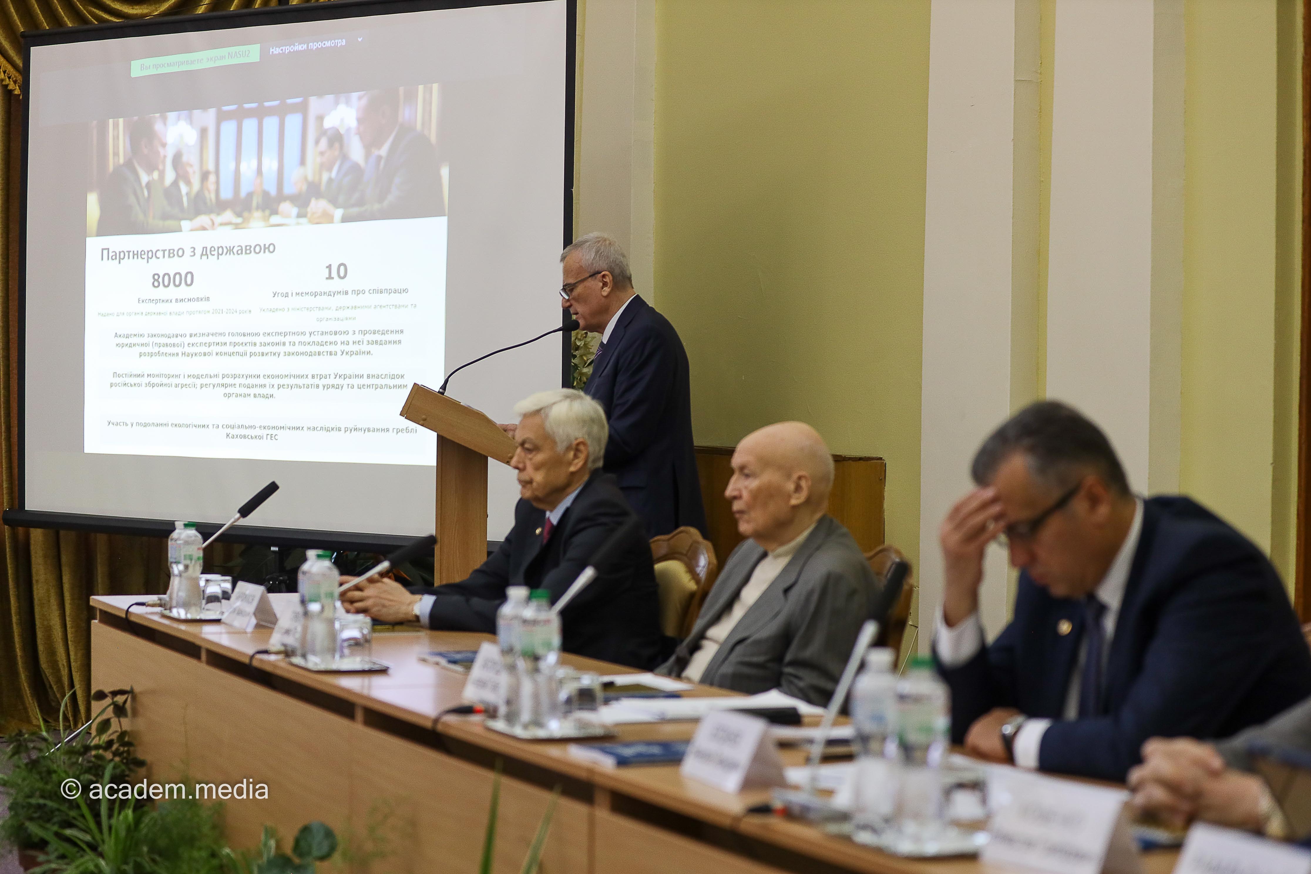 Потому академік Анатолій Загородній представив доповідь «Академія у часи викликів: підсумки п’ятиріччя», у якій підсумував головні напрями діяльності НАН України за останні п’ять років.