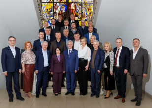 Академік НАН України Борис Буркинський звернув увагу присутніх на динаміку ВВП на одну особу в окремих країнах ЄС у порівнянні із аналогічним показником у нашій країні за період незалежності, прогноз динаміки ВВП на період до 2028 року, структуру валової доданої вартості за видами економічної діяльності, завданнями економічної науки і реальної економіки на шляху до ЄС.