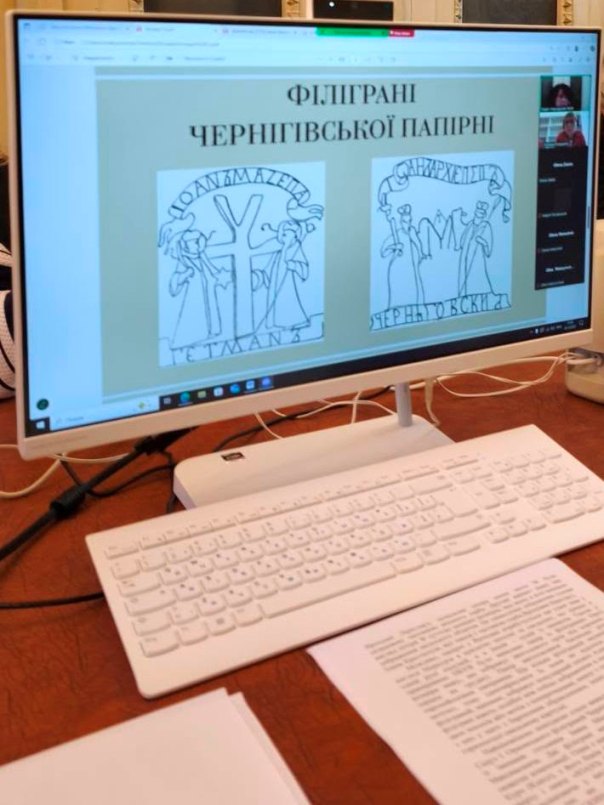 Далі кандидатка історичних наук Наталія Бондар коротко схарактеризувала особливості паперу чотирьох примірників збірки Національної бібліотеки України імені В. І. Вернадського і продемонструвала їхні сюжети. Дослідження показало, що для друку книги було використано 11 видів філіграней із папірень чеських і польських (нижньосилезьких) теренів, а також папір Чернігівської папірні.