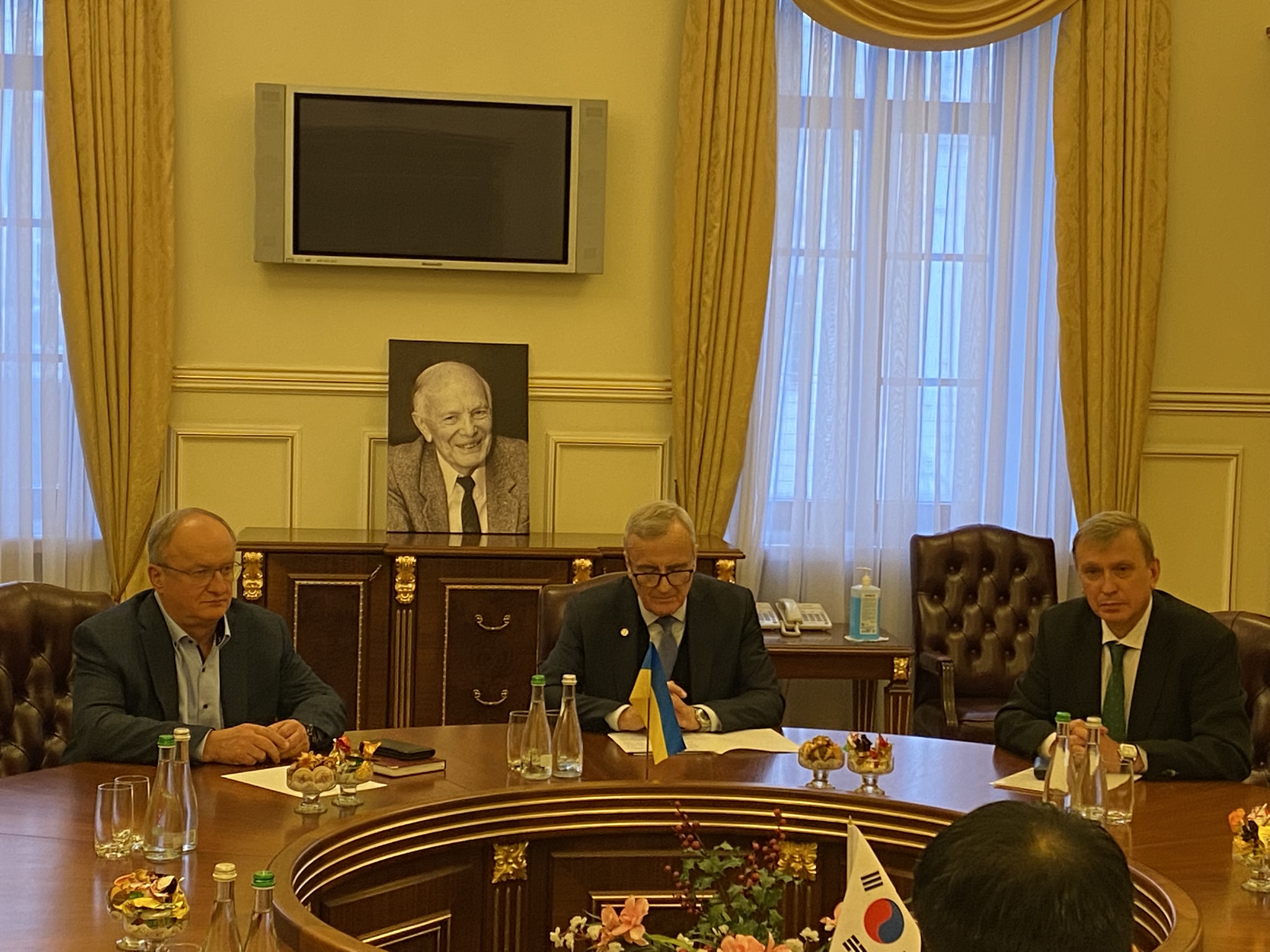Очільник Академії поінформував високого гостя про історію Національної академії наук України, її статус, структуру та ключові напрями діяльності. Окрему увагу він приділив питанням міжнародного наукового співробітництва, зокрема взаємодії установ НАН України з науковими організаціями та промисловими підприємствами Республіки Корея. Президент НАН України наголосив на важливості корейського досвіду повоєнної відбудови та підкреслив актуальність розвитку партнерства у науково-технологічній сфері в контексті відновлення України.