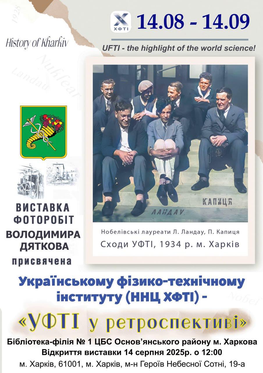 14 серпня 2025 року у бібліотеці-філії № 1 Центральної бібліотечної системи Основʼянського району Харкова відбулося відкриття виставки фотоколажів Володимира Дяткова «УФТІ у ретроспективі».