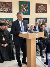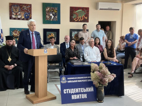 З вітальним словом виступив ректор університету Юрій Бошицький. Він закликав молодь сумлінно навчатися, виховувати в собі громадянську відповідальність, відданість ідеалам справедливості та права. Окремо згадав студентів-воїнів КУП НАН України, які віддали життя за свободу України, закликавши зберігати їх пам’ять.