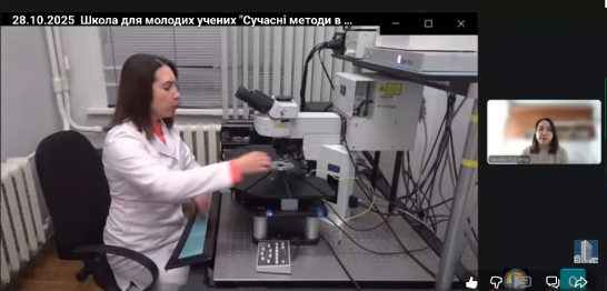 Лекцію з конфокальної мікроскопії та оцінювання життєздатності нейронів прочитала старший науковий співробітник відділу біофізики іонних каналів кандидат біологічних наук Наталія Розумна.