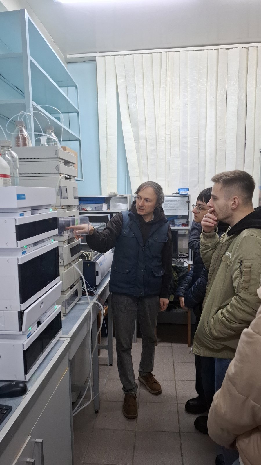 По тому гості завітали до Центру користування науковими приладами «Мас-спектрометрія і рідинна хроматографія». Керівниця Центру кандидат хімічних наук Ірина Лагута і його працівники –старші наукові співробітники кандидати хімічних наук Павло Кузема й Тетяна Фесенко – розповіли про можливості масспектрометра та рідинного хроматографа, показали, як виглядають і працюють ці прилади і яку інформацію можна отримати з їхньою допомогою.