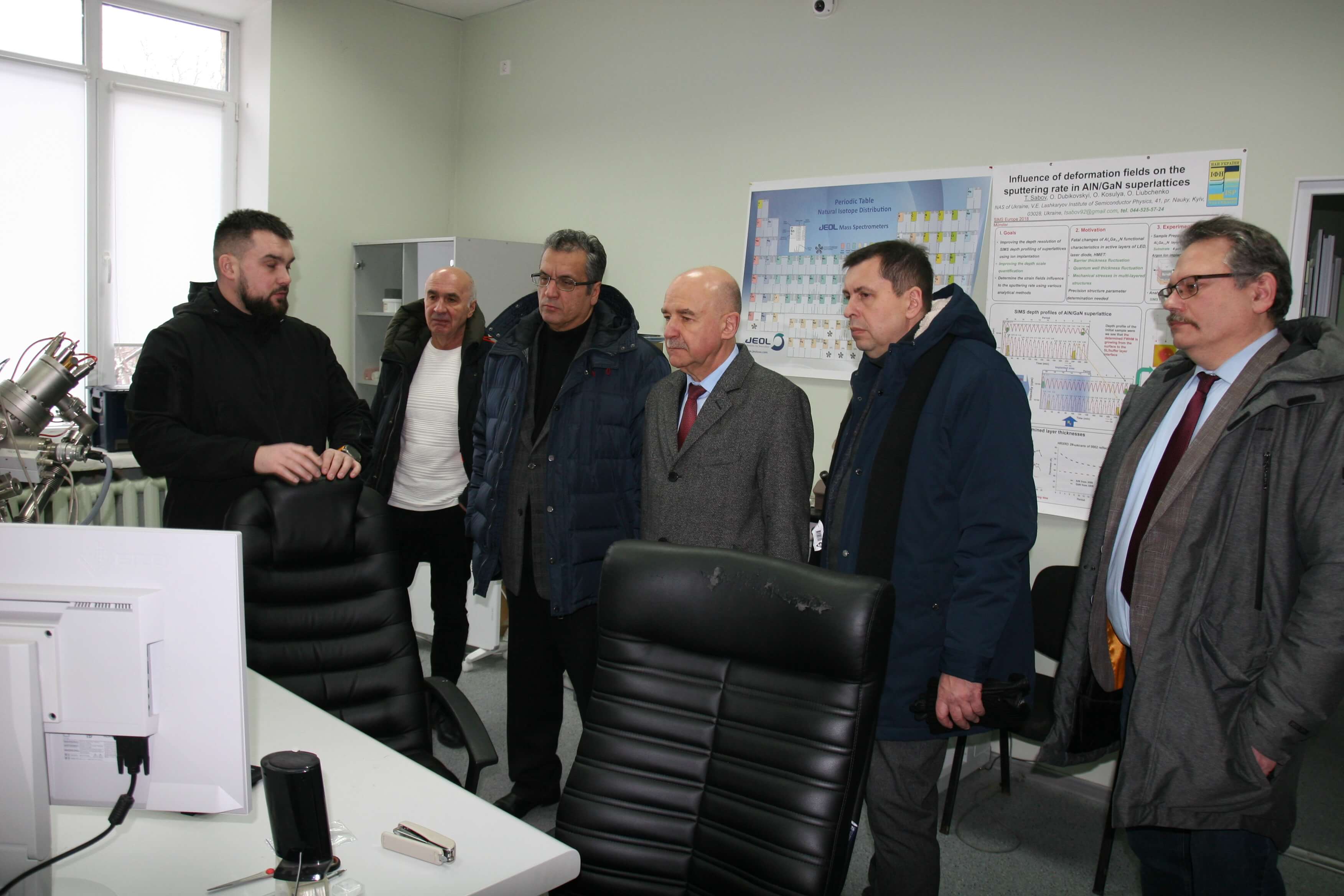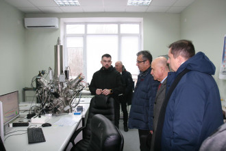 6 січня 2026 року Інститут фізики напівпровідників імені В.Є. Лашкарьова НАН України відвідало керівництво Національної академії наук України в особі першого віцепрезидента НАН України, голови Секції фізико-технічних і математичних наук НАН України академіка НАН України Вячеслава Богданова й академіка-секретаря Відділення фізики і астрономії НАН України академіка НАН України Михайла Бондаря. До складу делегації увійшов також учений секретар Секції фізико-технічних і математичних наук НАН України доктор технічних наук Сергій Беспалов. Метою візиту стало безпосереднє ознайомлення з науковою діяльністю Інституту, його кадровим та інфраструктурним потенціалом, а також обговорення актуальних завдань і стратегічних перспектив розвитку напівпровідникової мікроелектроніки у системі академічної науки в умовах сучасних викликів.