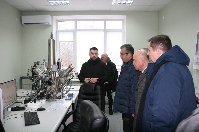 Гостей зустріли виконувач обов’язків директора Інституту доктор фізико-математичних наук Віктор Мельник, виконувач обов’язків заступника директора з наукової роботи Інституту кандидат фізико-математичних наук Сергій Мамикін і радник при дирекції Інституту академік НАН України Олександр Бєляєв.