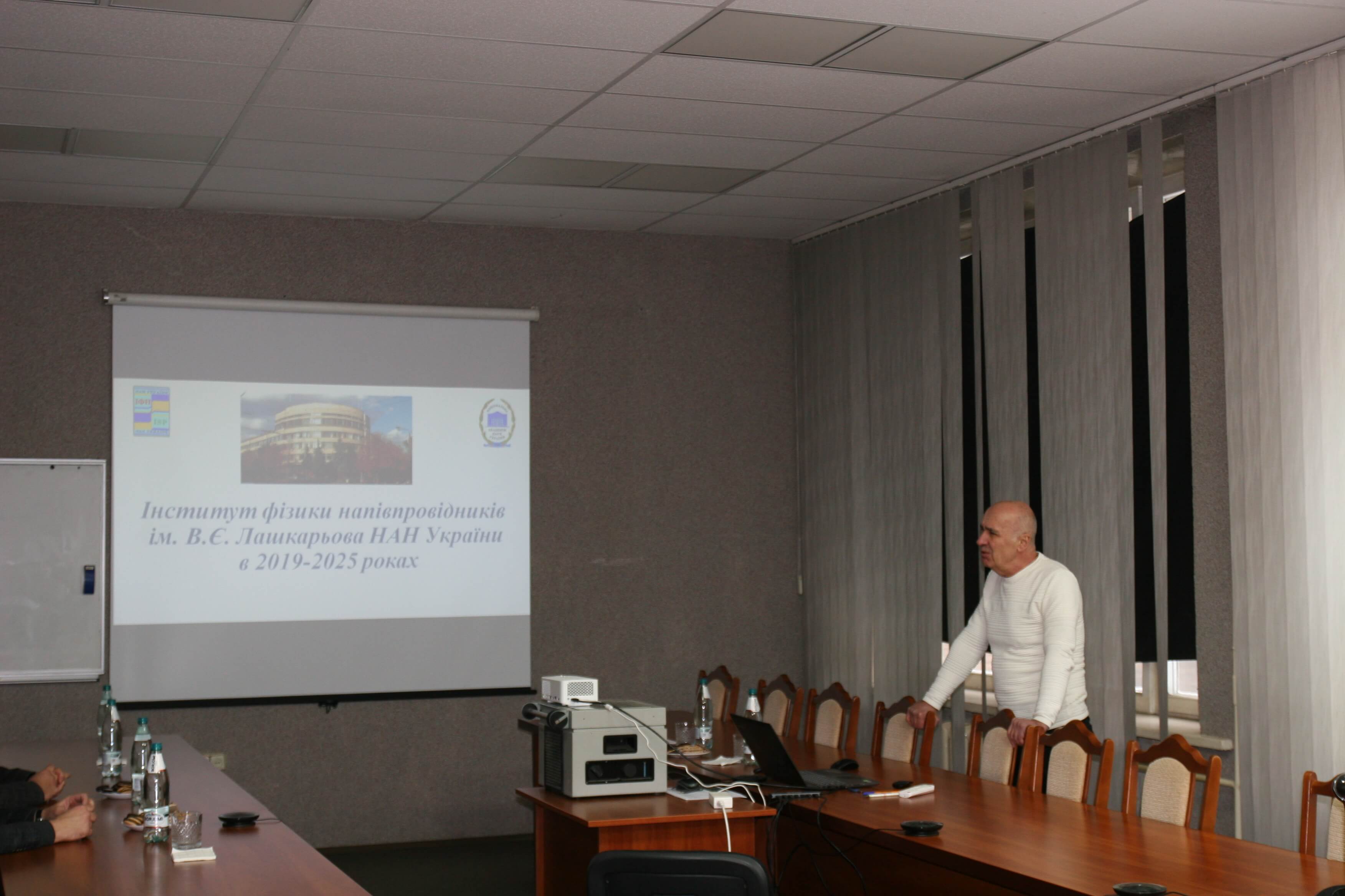 Завідувачі відділів теоретичної фізики, йонно-променевої інженерії і структурного аналізу, кінетичних явищ та поляритоніки, інфрачервоної та терагерцової електроніки, а також Центру колективного користування науковими приладами коротко схарактеризували діяльність своїх підрозділів, їхній кадровий склад, участь у міжнародних проєктах і наукові зв’язки з українськими й закордонними установами. До обговорення долучились академік НАН України Олександр Бєляєв і члени-кореспонденти НАН України Вячеслав Кочелап та Володимир Лисенко.