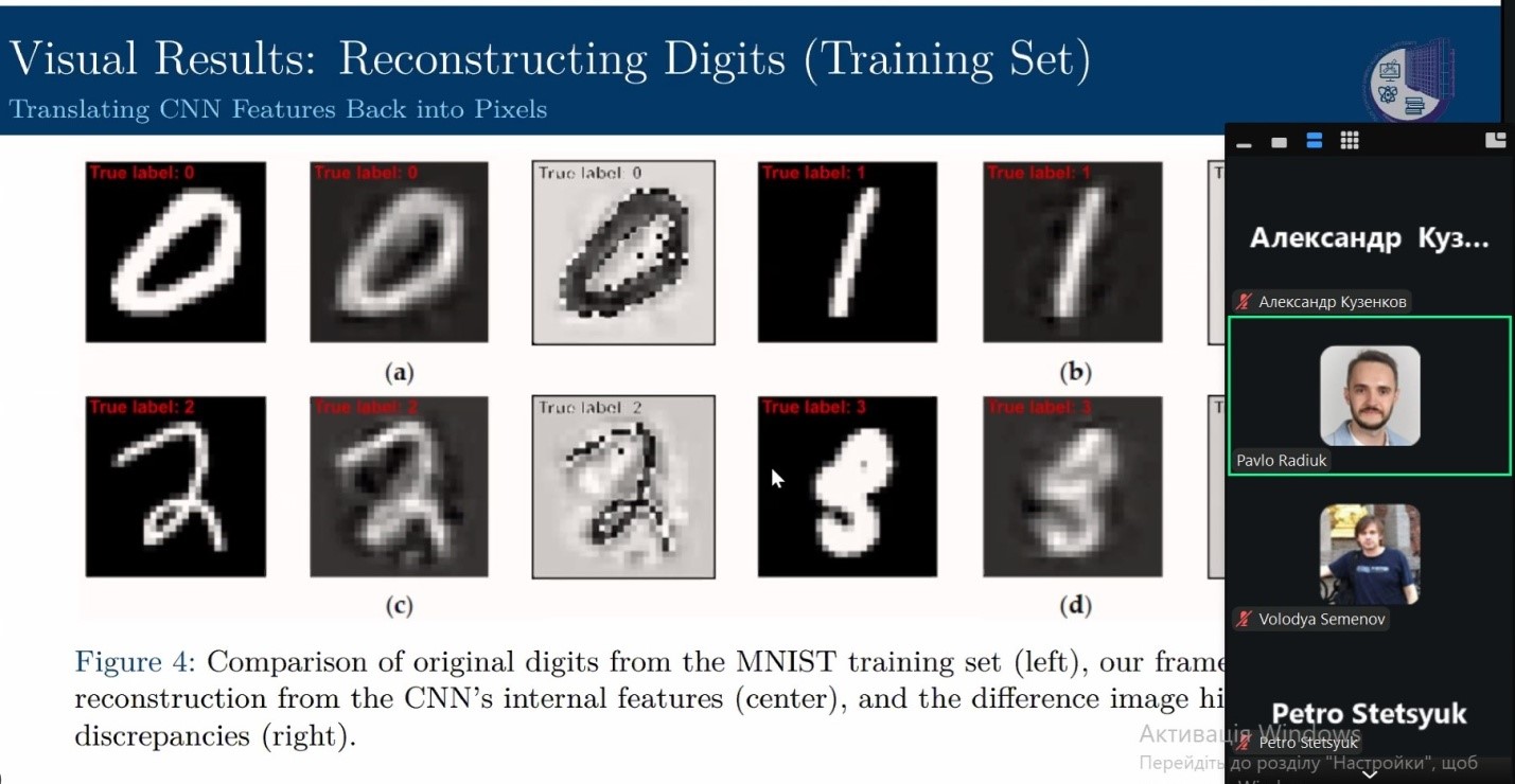 - питанням інтерпретованості штучного інтелекту через відображення матриці переходів від глибинних до інтерпретованих ознак;