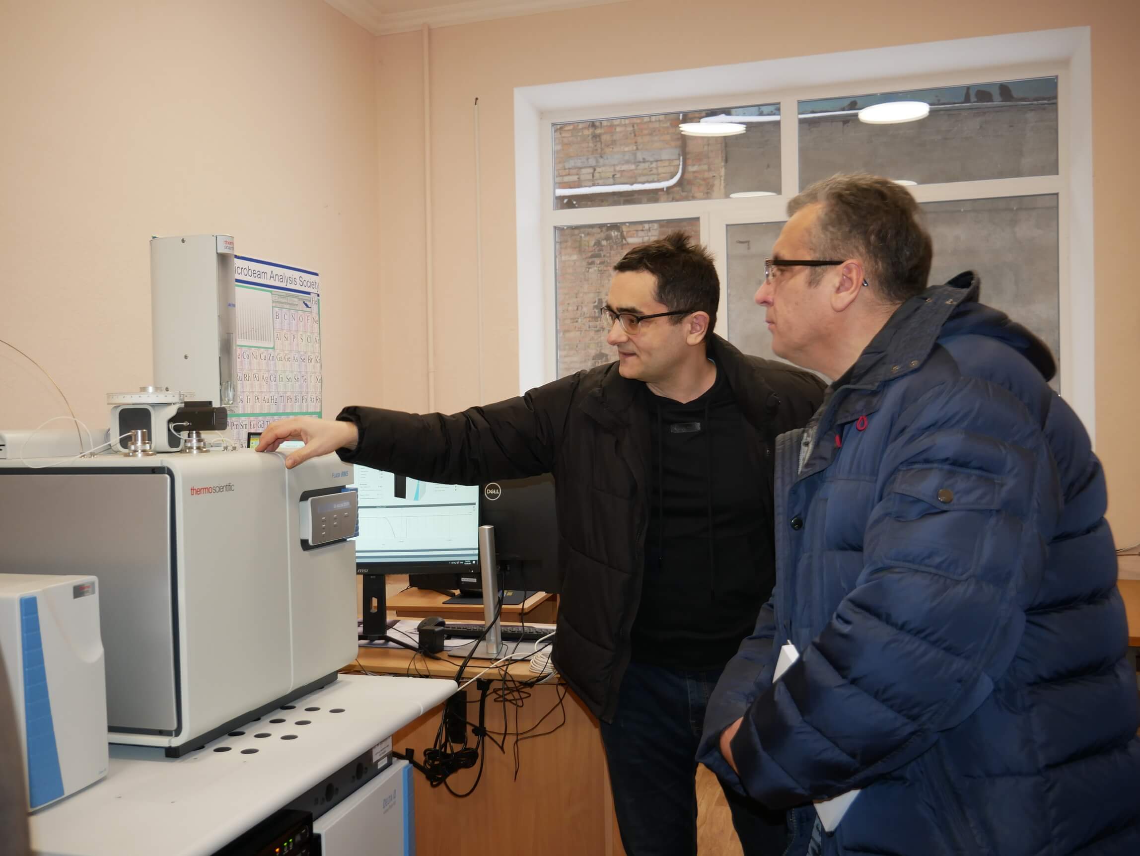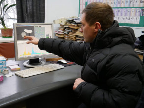 У лабораторії мікроелементного Центру колективного користування приладами НАН України «Мас-спектрометричний центр твердофазного, газового ізотопного та мікроелементного аналізу». Молодший науковий співробітник Ігор Швайка розповідає про роботу мас-спектрометра ThermoFinnigan ICP-MS ELEMENT-2 і системи лазерної абляції NewWave UP-193 SS.