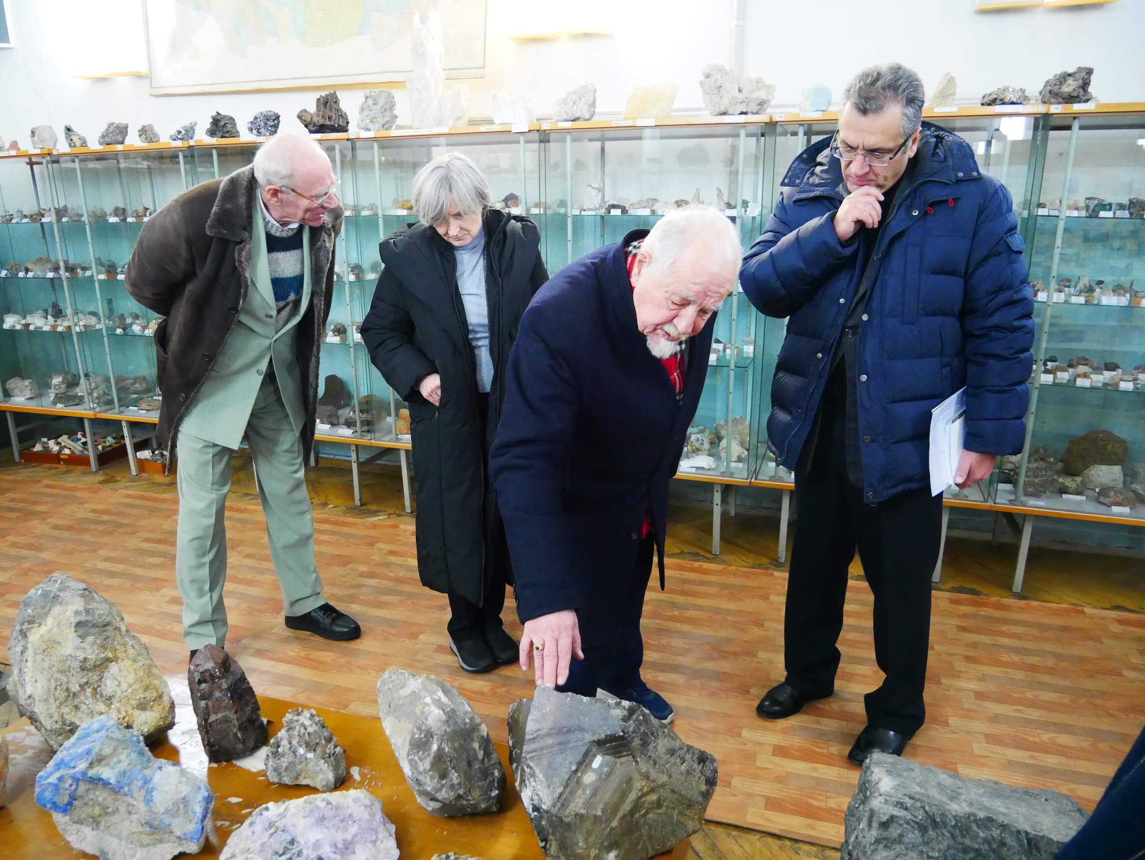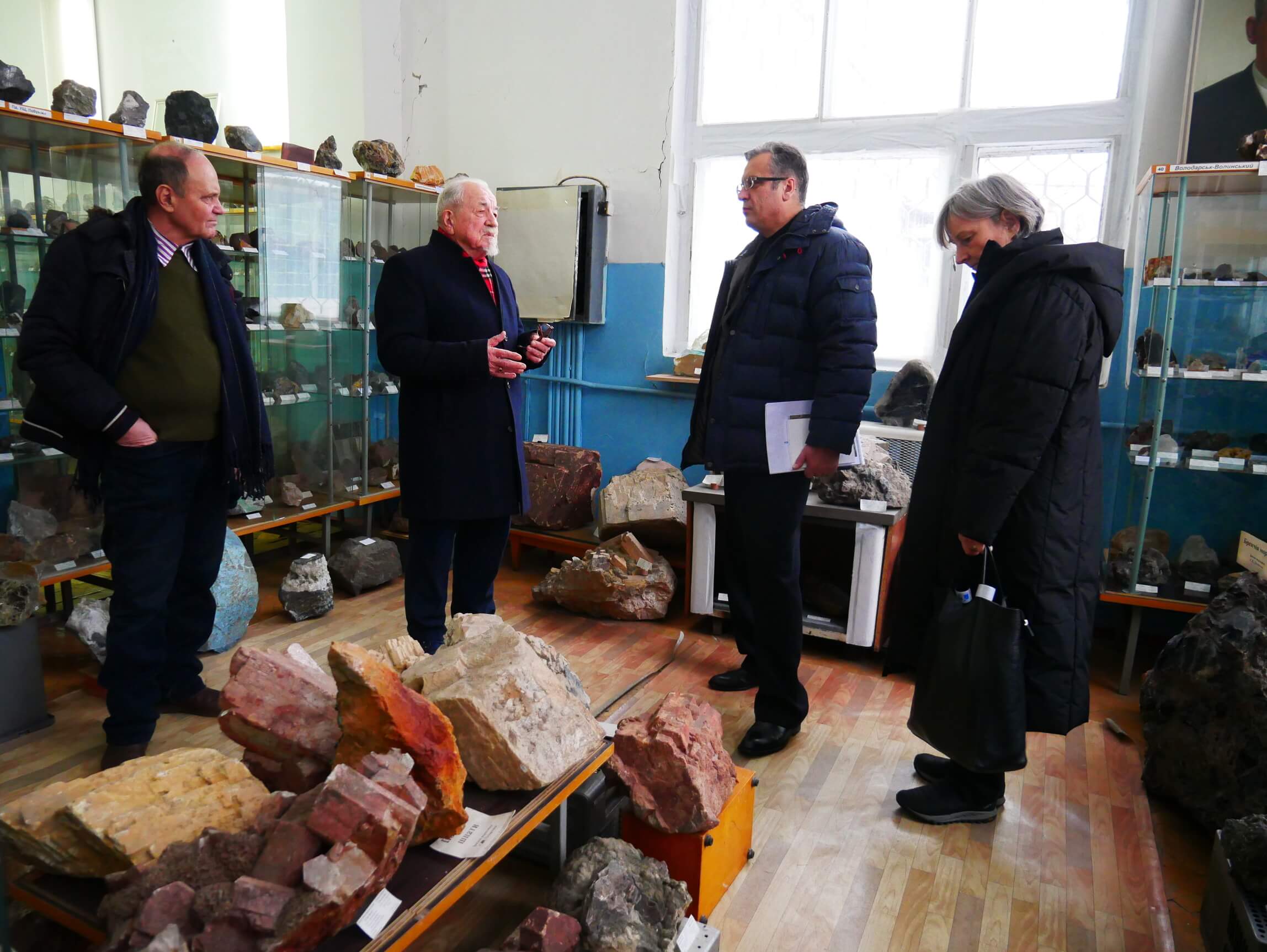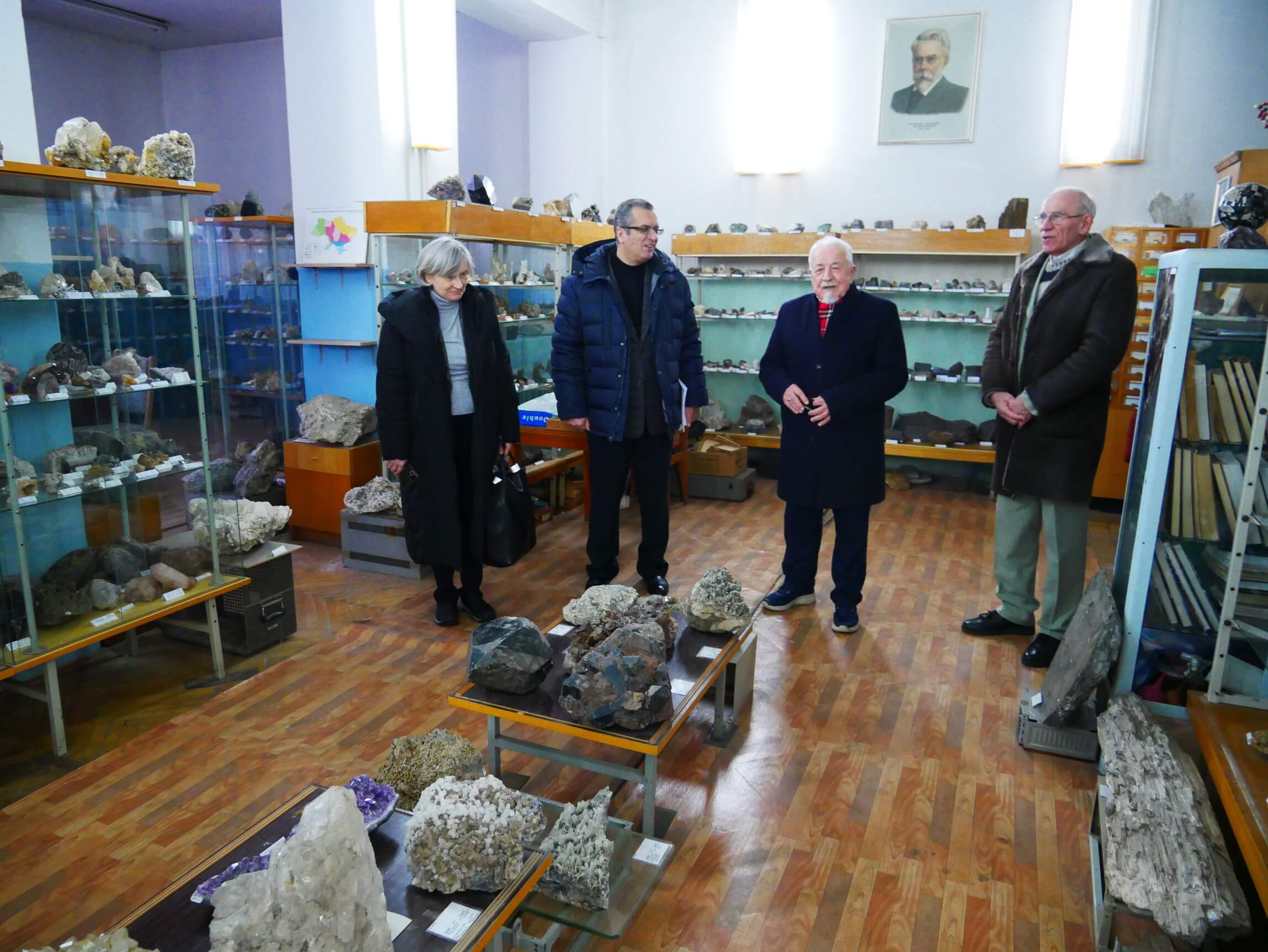 У мінералогічному музеї ім. академіка В.І. Вернадського. Зліва направо: академік НАН України Стелла Шехунова, НАН України НАН України академік Вячеслав Богданов, завідувач відділу доктор геолого-мінералогічних наук, професор Володимир Павлишин і член-кореспондент НАН України Леонід Степанюк