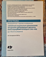25-26 вересня 2025 року відбулася Всеукраїнська наукова конференція «Українське національно-демократичне об’єднання: державницька ідеологія, консолідаційний потенціал (1925–1939) (до 100-річчя утворення)», організована Інститутом українознавства ім. І. Крип’якевича НАН України за підтримки Західного наукового центру (ЗНЦ) НАН України і МОН України, Наукового товариства імені Шевченка, Львівського національного університету імені Івана Франка, Київського університету права НАН України, Національної Академії Сухопутних військ імені гетьмана Петра Сагайдачного, Дрогобицького державного педагогічного університету імені Івана Франка, Карпатського національного університету імені Василя Стефаника, Центрального державного історичного архіву України у Львові.