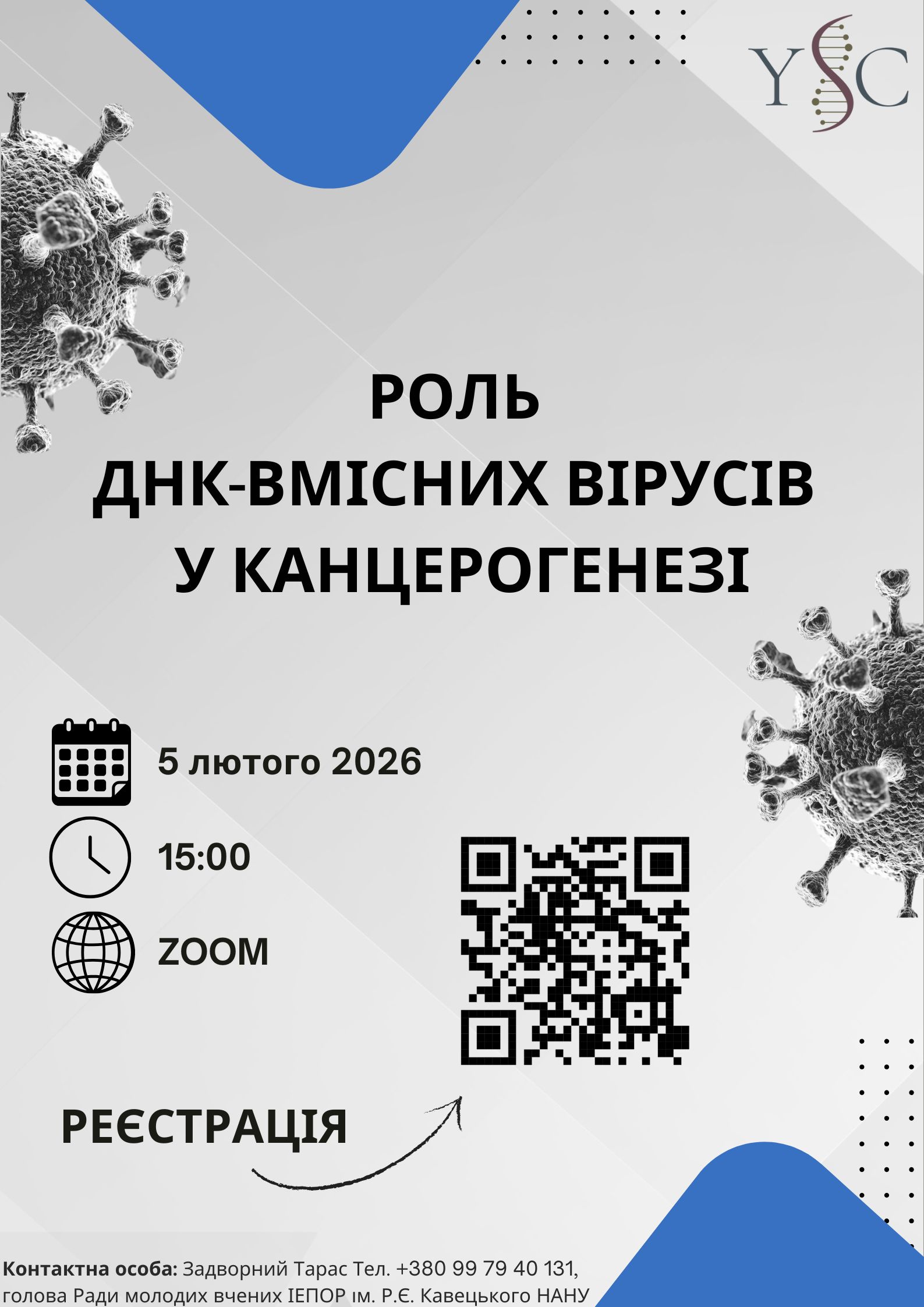 5 лютого 2026 року в Інституті експериментальної патології, онкології і радіобіології (ІЕПОР) ім. Р.Є. Кавецького НАН України відбудеться науковий онлайн-семінар, присвячений ролі вірусів у виникненні та прогресії злоякісних новоутворень.