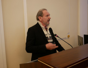 Далі із науковою доповіддю «Створення нейтронопоглинальних матеріалів для систем управління та захисту атомних реакторів з підвищеними характеристиками терміну служби з використанням вітчизняної сировини і технологій виготовлення» виступив заступник директора Науково-технічного комплексу «Ядерний паливний цикл» Національного наукового центру «Харківський фізико-технічний інститут» Віктор Грицина.