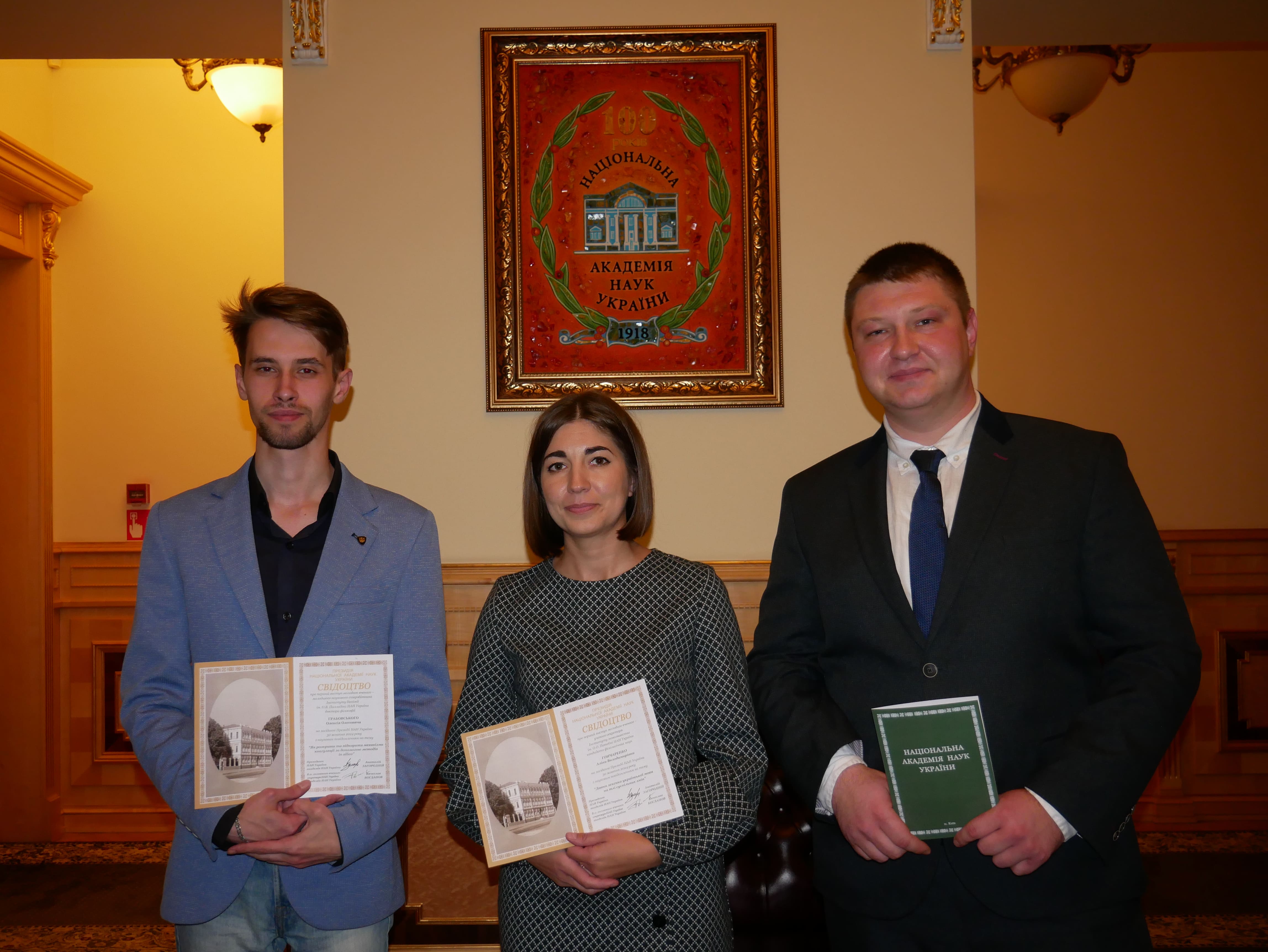 Президент Академії академік Анатолій Загородній вручив молодим ученим свідоцтва на згадку про виступ на засіданні Президії НАН України.